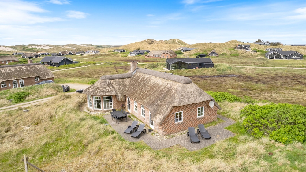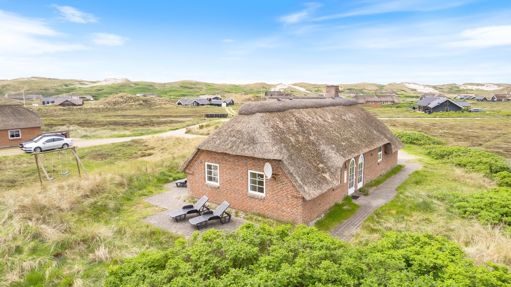 Hier könnt ihr Urlaub in einem Ferienhaus mit herrlicher und ruhiger Lage, nur wenige Gehminuten vom Strand der dänischen Westküste entfernt, machen. Es gibt einen schönen Blick nach Westen auf die Dünenlandschaft, in der zeitweise auch das Rauschen der Nordsee zu hören ist. Das Ferienhaus im Riskrogvej 17 bietet 8 Schlafplätze und erlaubt 1 Hund.
