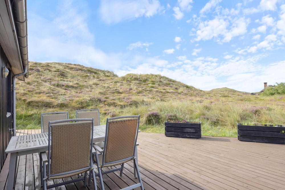 Da das Ferienhaus in einem schönen Naturgebiet gelegen ist, genießt Ihr von der guten offenen Terrasse eine tolle Aussicht über die Heide- und Dünenlandschaft. Einen besseren Rahmen für einen gemütlichen Grillabend oder einen faulen Tag auf einer Sonnenliege findet man kaum.