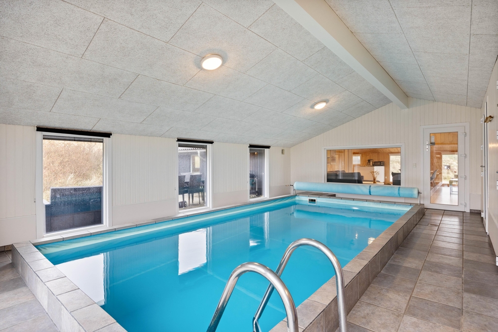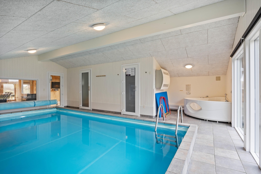 Im, vom Wohnbereich aus einsehbaren, Poolraum findet ihr neben dem Pool auch den Whirlpool und den Zugang zur Sauna. Hier steht also Toben im Pool auf dem Programm. Durch die Glasscheibe habt ihr eure Kinder auch vom Wohnraum aus gut im Blick, falls euch lieber nach Entspannung auf dem Sofa ist.