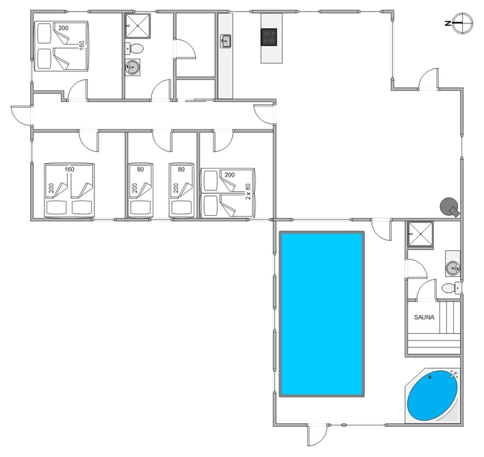 Herzlich willkommen in diesem im Jahre 2019 renovierten Poolhaus mit Platz für bis zu 8 Personen und eure beiden Familienhunde. Hier im Riskrogvej 48, an der dänischen Westküste, findet ihr auf 157 modern gestalteten Quadratmetern tolle Extras wie Sauna, Whirlpool und Kamin, die euch den Urlaub verschönern werden.