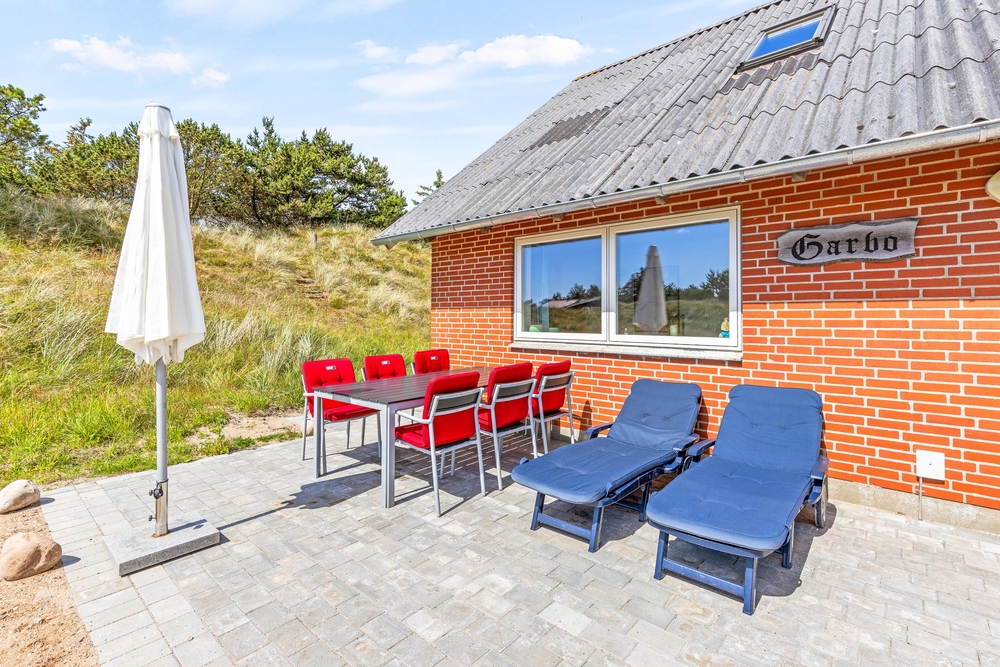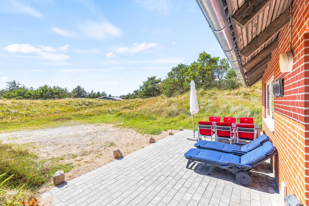 Der Außenbereich der Ferienwohnung in Vejers lädt mit einer offenen Steinterrasse und gemütlichen Gartenmöbeln zum Verweilen ein. Ein Grill steht euch für gesellige Grillabende zur Verfügung. Auf den bereitgestellten Sonnenliegen könnt ihr die Sonne genießen und die Ruhe auf dem idyllischen Naturgrundstück auskosten.