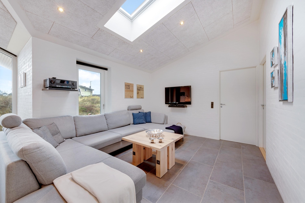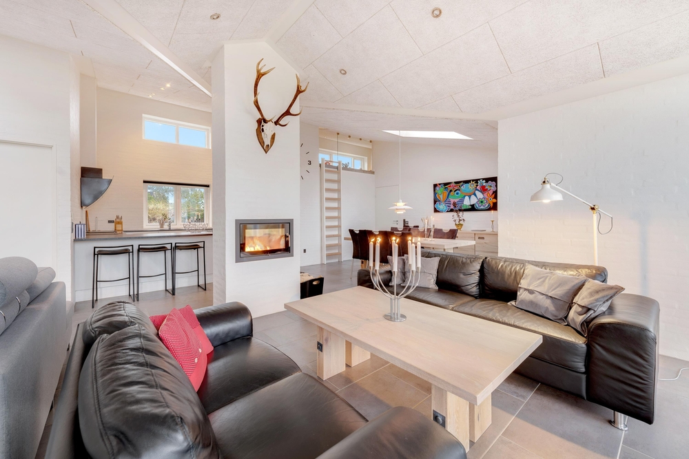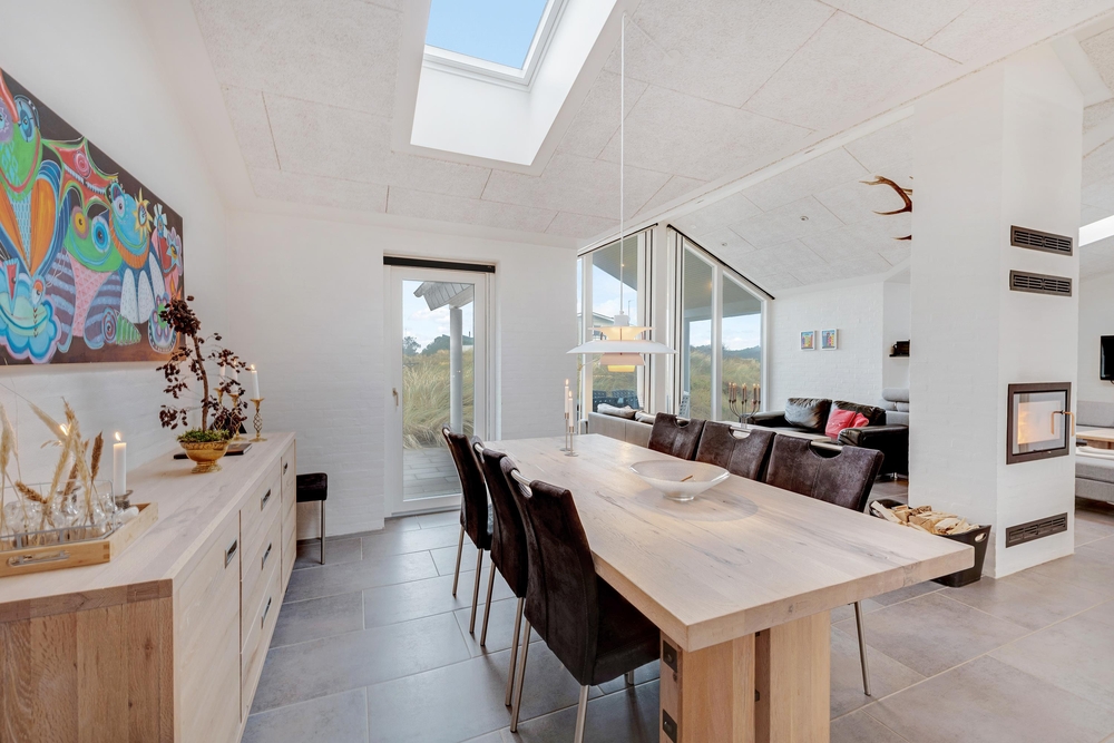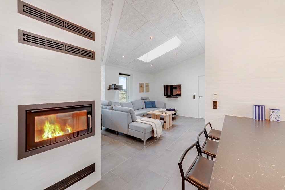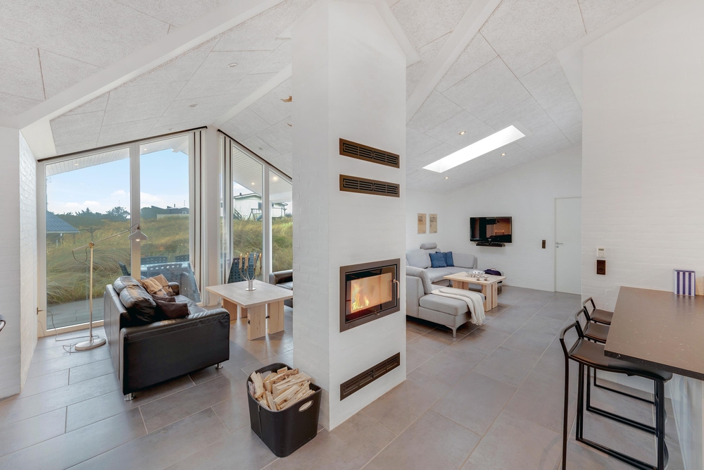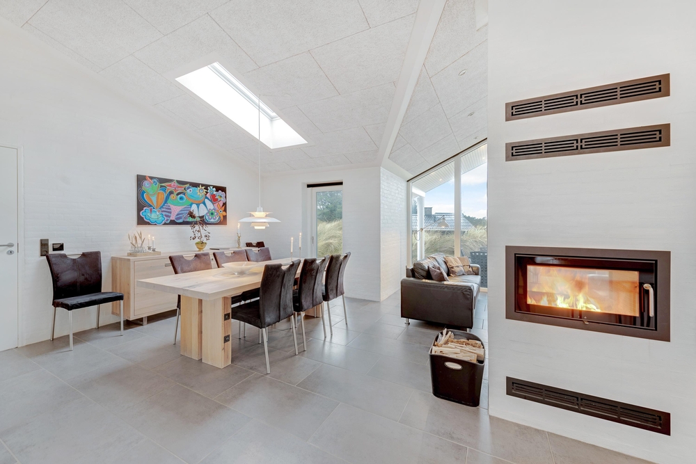 Mit seiner stillvollen Einrichtung und bequemen Sitzmöglichkeiten lädt Risvej 8 zu einem gemütlichen Urlaub für bis zu 8 Personen ein. Der schöne Gemeinschaftsraum mit einer modernen Küche ist hell und freundlich eingerichtet und hat große Fenster, die für eine wundervolle Aussicht und einen schönen Lichteinfall sorgen. Abends, wenn die Dunkelheit anbricht, sorgt der Kaminofen für eine ?hyggelig? gemütliche Stimmung.