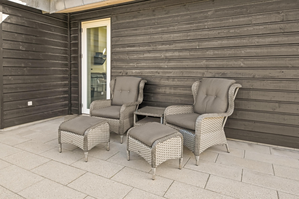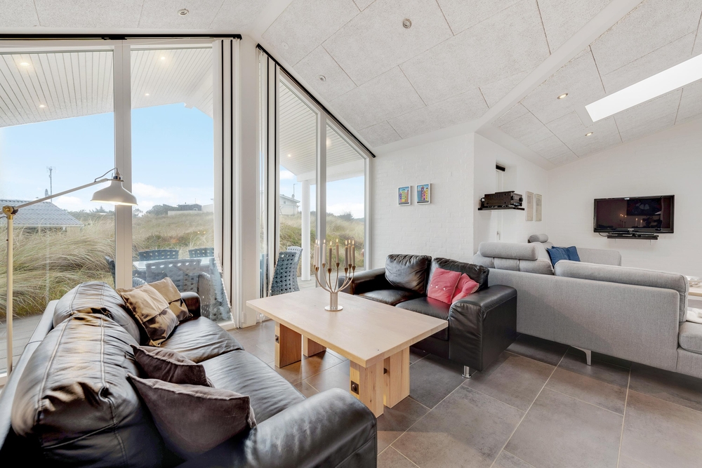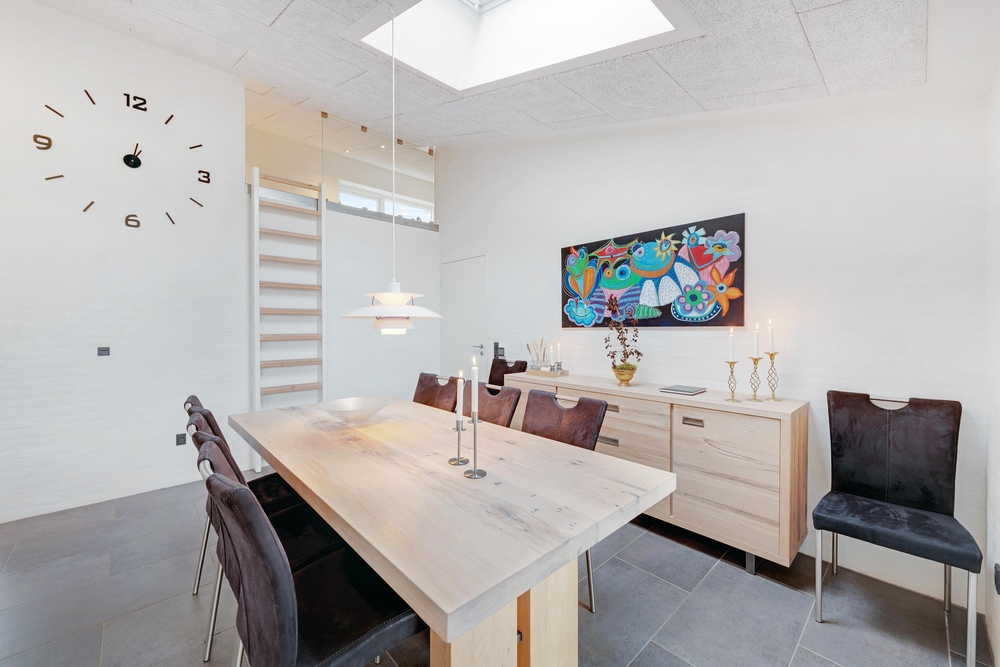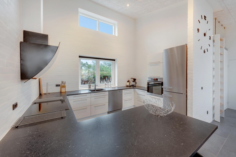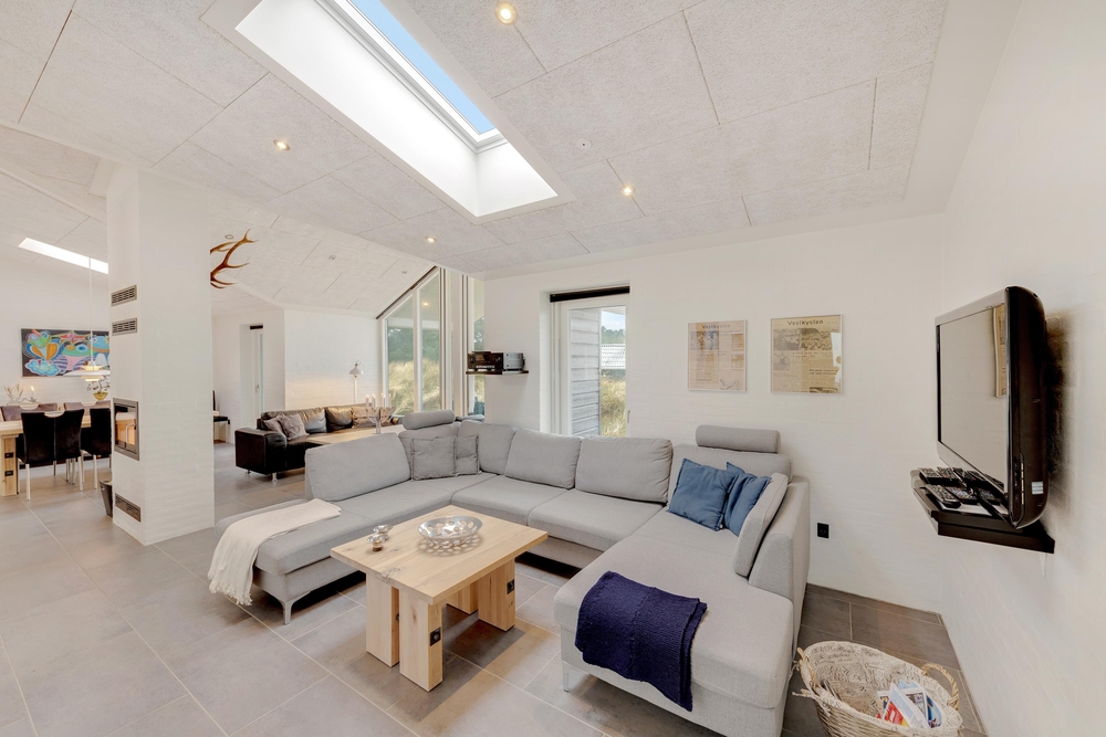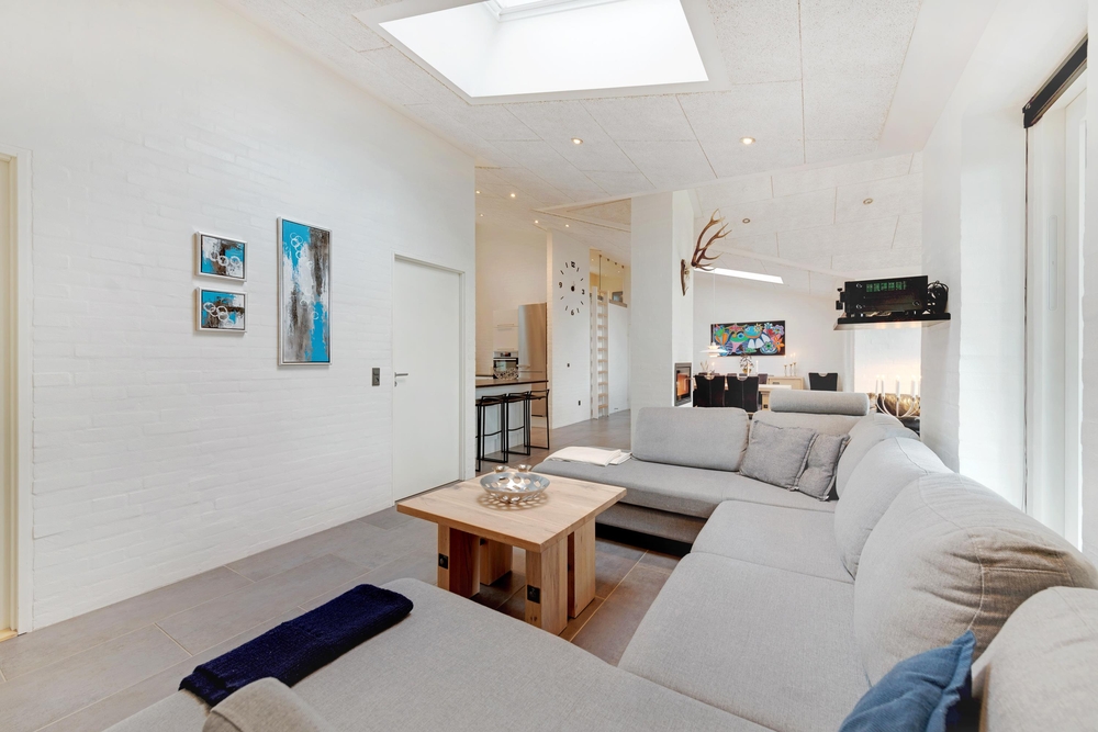 Mit seiner stillvollen Einrichtung und bequemen Sitzmöglichkeiten lädt Risvej 8 zu einem gemütlichen Urlaub für bis zu 8 Personen ein. Der schöne Gemeinschaftsraum mit einer modernen Küche ist hell und freundlich eingerichtet und hat große Fenster, die für eine wundervolle Aussicht und einen schönen Lichteinfall sorgen. Abends, wenn die Dunkelheit anbricht, sorgt der Kaminofen für eine ?hyggelig? gemütliche Stimmung.