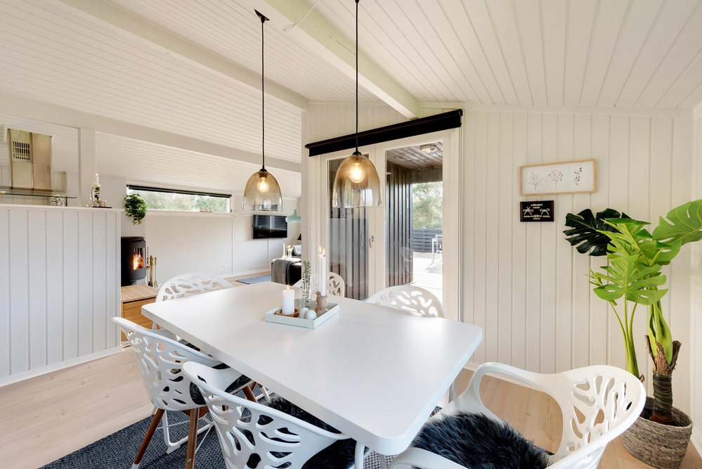 Dieses zwar kleine aber modern und stimmungsvoll eingerichtete Haus, bietet auf 65 m2 insgesamt drei Schlafzimmer, ein Badezimmer mit Fußbodenheizung und eine Kombiwaschmaschine mit integriertem Trockner, sowie einen kombinierten Wohn- und Essbereich mit offener Küche. Gemeinsam Kochen, sich auf dem Sofa entspannen, Abends den Kamin betreiben ? hier könnt ihr es euch so richtig gemütlich machen und euch entspannen. Der Geschirrspüler nimmt euch die Arbeit des Spülens ab ? ihr habt also mehr Qualitätszeit für- und miteinander. Durch den gratis Internetzugang ist euch der Kontakt mit Freunden und dem Rest der Welt garantiert ? trotz der Abgeschiedenheit in der herrlichen Natur Westjütlands braucht ihr auf den digitalen Kontakt zur Außenwelt natürlich nicht zu verzichten.