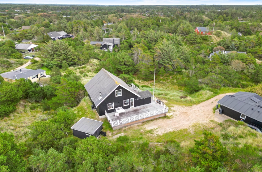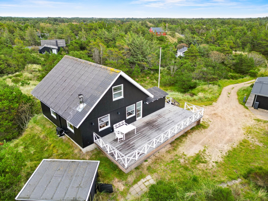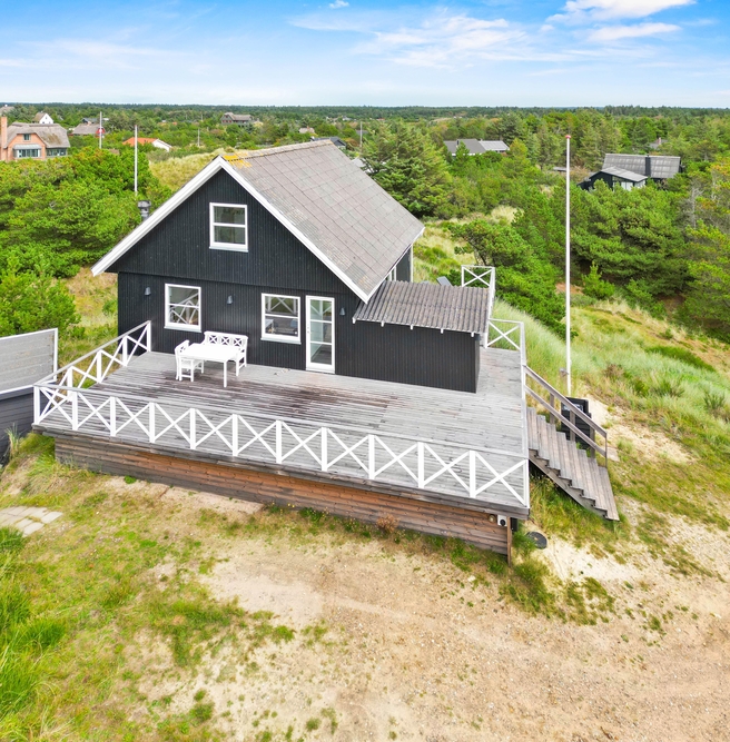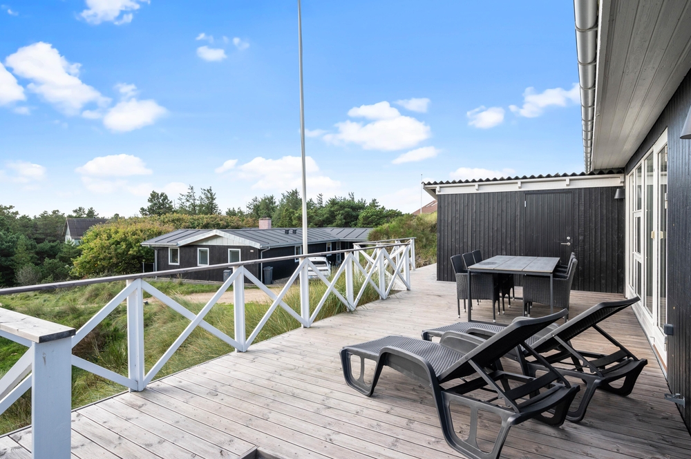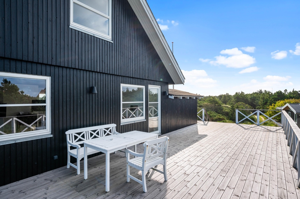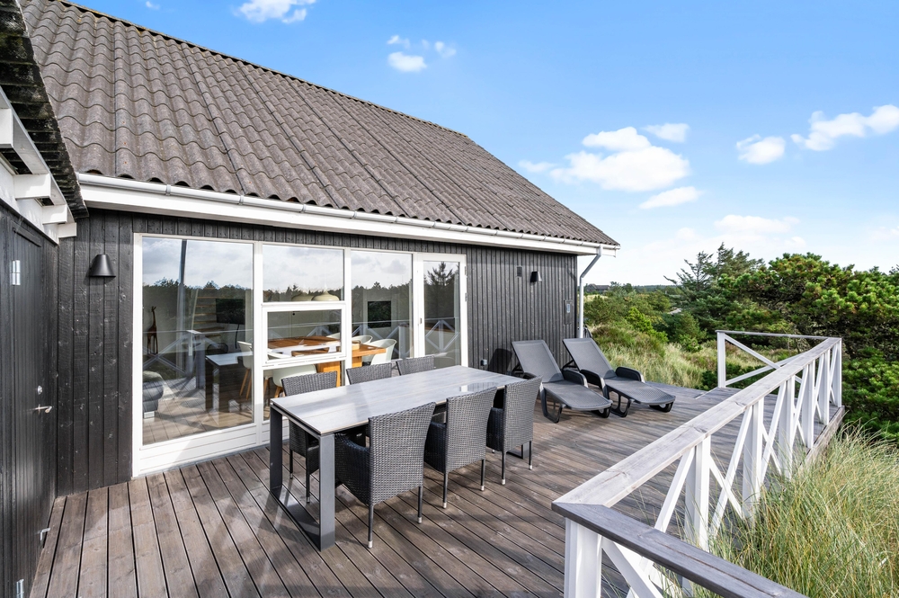 Rund um das Haus ist ein traumhaftes Terrassen Areal angelegt. Hier findet jeder für sich ein ruhiges Plätzchen. Ihr habt die Wahl, ob Ihr Euch mit dem Liegestuhl in der Sonne entspannen wollt, oder zum gemeinsamen Grillabend lieber etwas geschützter im Schatten sitzen möchtet. Das Schöne ist, egal wo Ihr Euch draußen aufhaltet, Ihr seid umgeben von der typischen Natur der dänischen Nordseeküste und könnt einen wunderbaren Weitblick genießen.