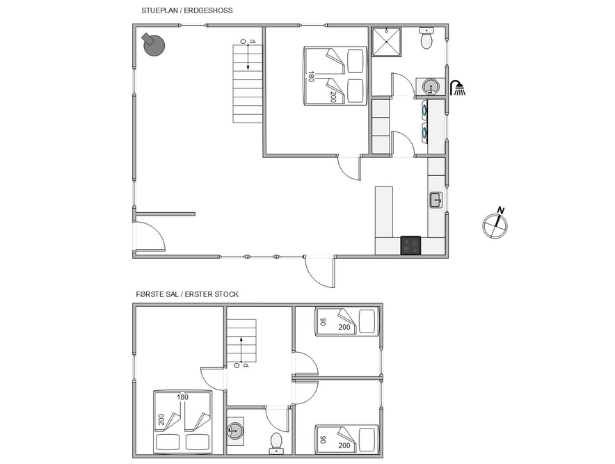 Das Ferienhaus hat insgesamt drei schöne Schlafzimmer, die alle mit Einzelbetten ausgestattet sind. Erholsamer Schlaf ist in dem schönen Ambiente garantiert. Außerdem gibt es ein Badezimmer mit Fußbodenheizung und ein Gäste WC.