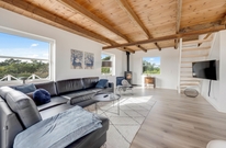 Der helle, offene Wohnbereich lädt zu gemeinsamen Stunden ein. Hier könnt Ihr zu einem Spieleabend zusammenkommen, oder Ihr kuschelt Euch alle auf das große Sofa und macht einen Filmeabend mit Popcorn und allem was dazu gehört. Wenn dann noch das Feuer im Kaminofen knistert, ist das Hyggegefühl perfekt.
