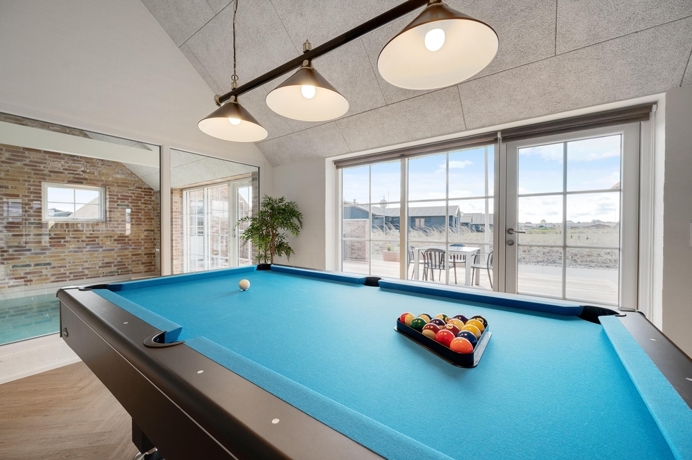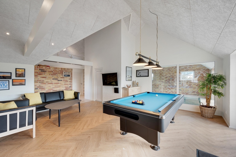 Im Sand Holms Vej 9 in Søndervig, nur 350 Meter vom Strand entfernt, liegt dieses große und moderne Aktivitätshaus, welches euch genügend Platz für bis zu 10 Personen bietet und keine Wünsche offenlässt. Das Beste ist, dass eure beiden Hunde hier ebenfalls herzlich willkommen sind. Ob ein Pool mit Gegenstromanlage, ein Außenwhirlpool, eine Sauna oder ein Billardtisch, alles ist vorhanden. Für die Gemütlichkeit am Abend sorgt der Holzofen im Wohnbereich.