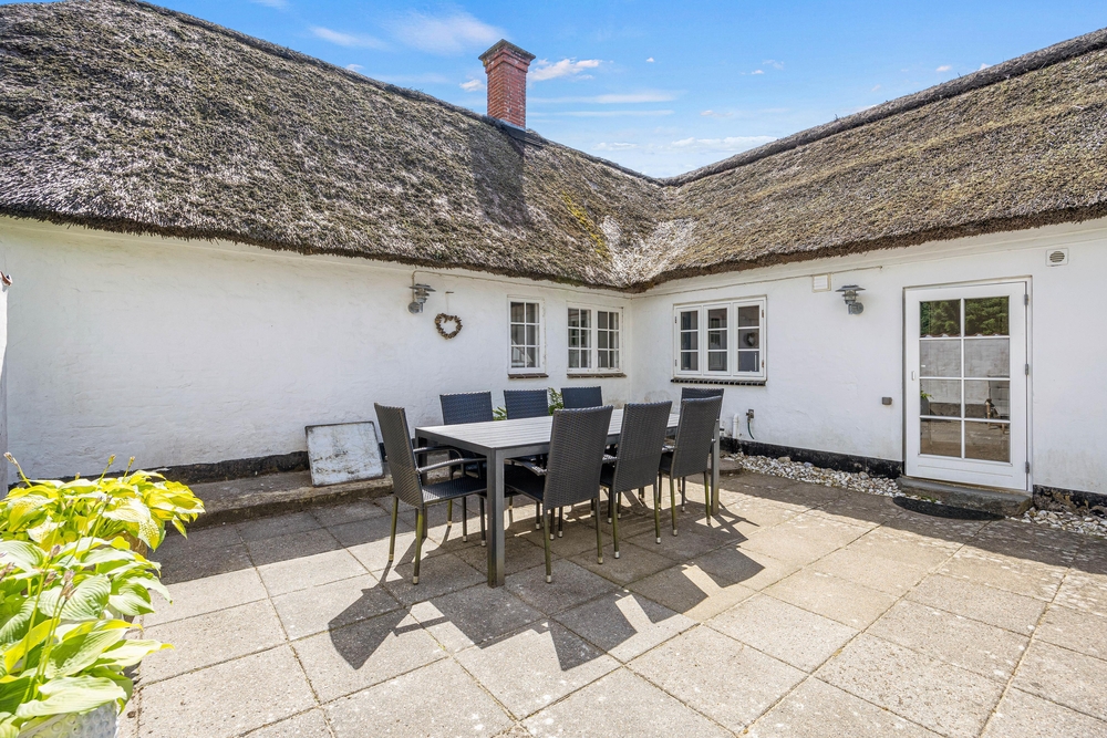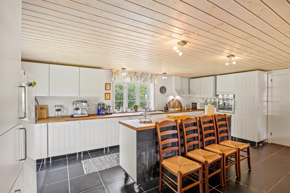 Der Wohnbereich des Ferienhauses in Houstrup ist der perfekte Ort, um nach einem ereignisreichen Tag zu entspannen und zur Ruhe zu kommen. Der Kaminofen sorgt in den kühleren Monaten für eine behagliche Wärme und eine romantische Atmosphäre. Hier könnt ihr es euch mit einem guten Buch oder einem Glas Wein gemütlich machen und die wohlverdiente Erholung genießen. Auch für gesellige Abende ist der Wohnbereich bestens geeignet, denn er bietet genügend Platz für alle Gäste. Der offene Küchen,- und Essbereich ist der Mittelpunkt des Ferienhauses und lädt zu geselligen Abenden ein. Eine moderne Küche mit Spülmaschine erleichtert die Zubereitung eurer Speisen. Der große Esstisch bietet reichlich Platz für gemeinsame Mahlzeiten, Spieleabende oder einfach nur lange Gespräche bei einem Glas Wein. Durch die offene Verbindung seid ihr immer in Gesellschaft, egal ob beim Kochen oder Entspannen. 2 Badezimmer sorgen dafür, dass ihr keinen Morgenstress habt und jeder seinen Raum für die persönliche Pflege nutzen kann. Die Sauna sorgt nach einem Tag voller Aktivitäten für wohltuende Entspannung und für noch ein wenig mehr Wellness steht euch ein Whirlpool zur Verfügung, in dem ihr die Seele baumeln lassen könnt. 4 gemütliche Schlafzimmer, welche alle mit einem Doppelbett ausgestattet sind, bieten ausreichend Platz für alle.