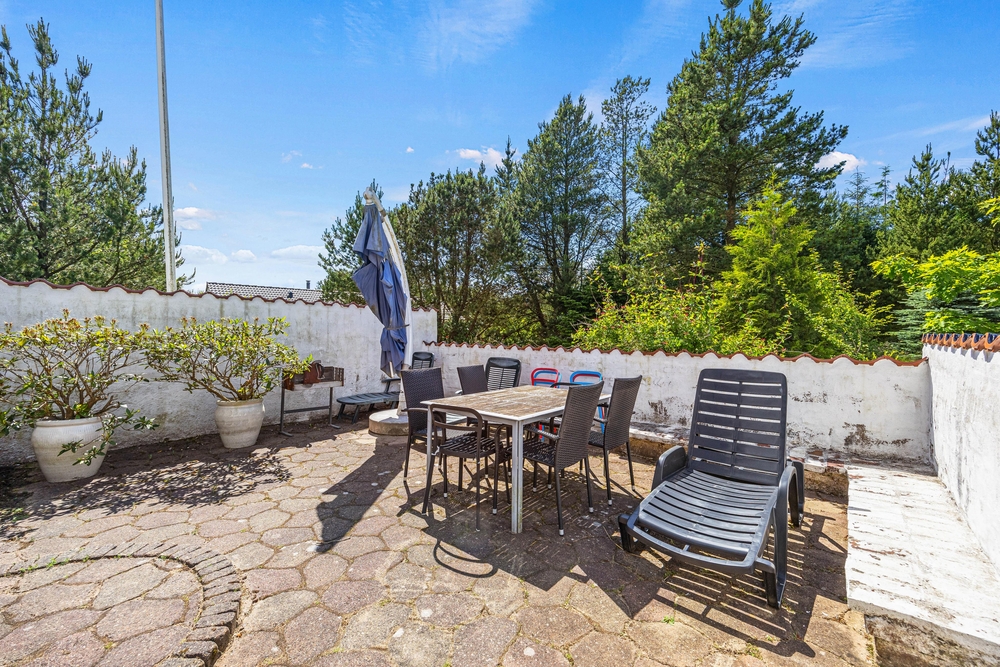 Der Außenbereich des Ferienhauses bietet ebenso zahlreiche Möglichkeiten zur Freizeitgestaltung und Entspannung. Die offene Terrasse ist ideal, um die Sonne zu genießen oder ein gemütliches Frühstück im Freien zu erleben. Für diejenigen, die mehr Privatsphäre bevorzugen, bietet die abgeschirmte Terrasse eine ruhige Ecke zum Lesen oder Entspannen. Hier könnt ihr ungestört euren Kaffee genießen und die Ruhe der Umgebung auf euch wirken lassen. Das Rasengrundstück bietet viel Platz für verschiedene Outdoor-Aktivitäten. Kinder können hier sicher spielen, während die Erwachsenen den Grill nutzen, um köstliche Mahlzeiten zuzubereiten.