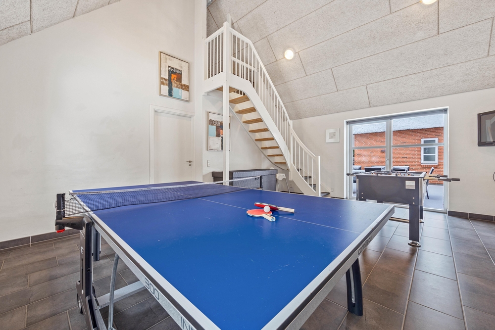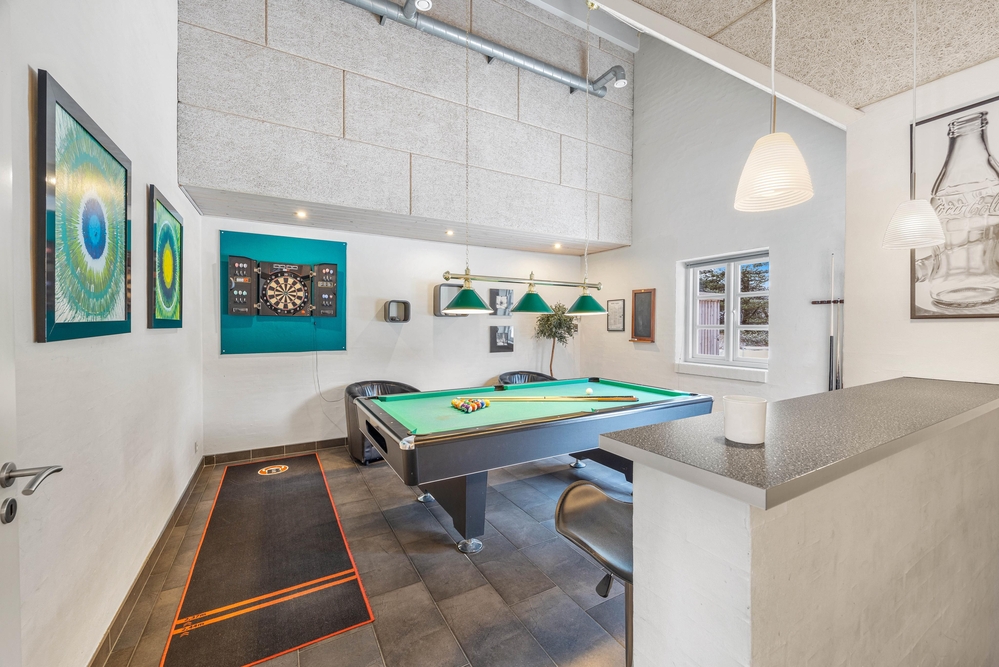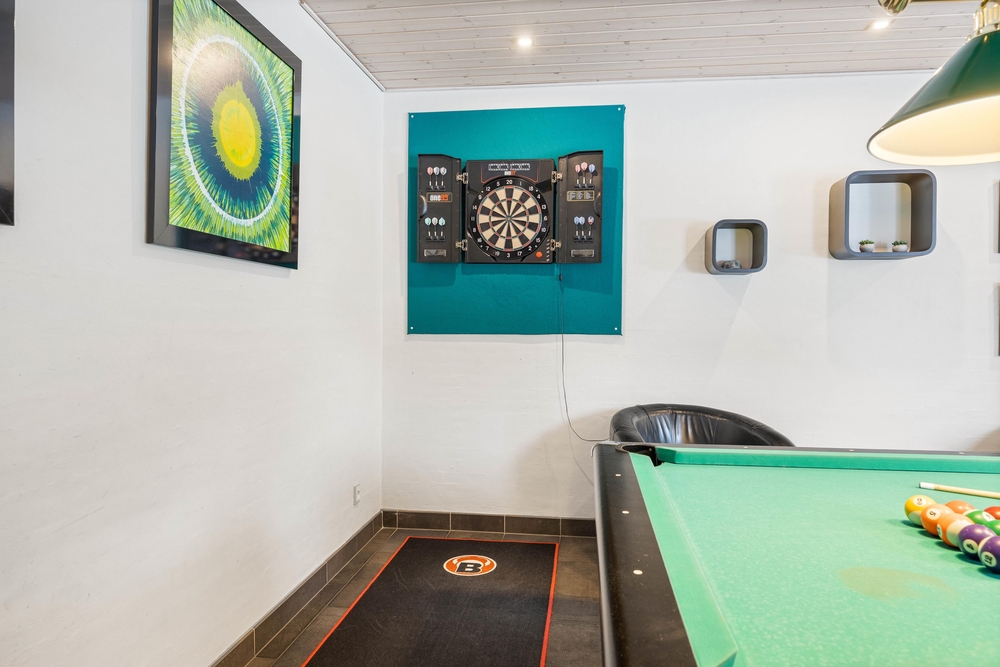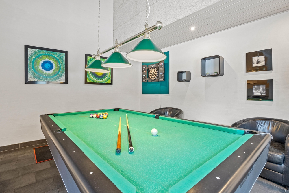 Ein weiteres Highlight ist die großzügigen Aktivitätsräume mit Darts, Poolbillard und Tischtennis. Abgetrennt vom Wohnbereich des Hauses kann hier das eine oder andere Tischtennis Duell ausgefochten werden, oder bei einer Runde Darts und einem kühlen Bier an der Bar, der Ferientag beendet werden.