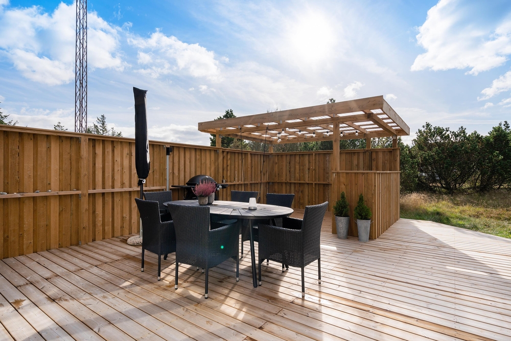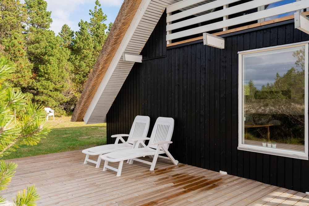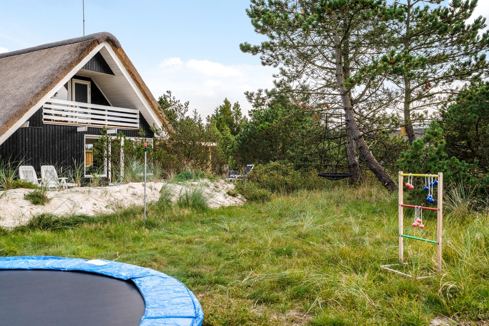 Der Terrassenbereich lädt zu vielen Stunden an der frischen Luft auf der teilweise sogar überdachte Terrasse ein. An heißen Tage vom 1. April bis zum 31. Oktober könnt ihr sogar unter freiem Himmel unter der Außendusche eine Erfrischung erhalten oder nach dem Strandspaziergang die Füße vom Sand befreien. Sehr zur Freude der Kinder gibt es ein Trampolin sowie diverse Spielmöglichkeiten im Garten.