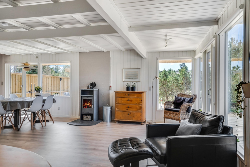 Im Wohnzimmer gibt es auch einen Kamin, welcher zusammen mit der Luft-zu-Luft-Wärmepumpe gerade an kühleren Tagen oder am Abend für eine besonders angenehme Wärme und damit auch super gemütliche Urlaubsatmosphäre sorgt.