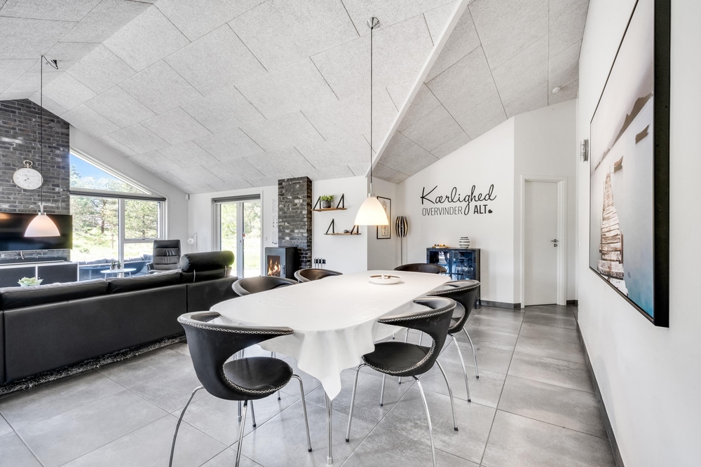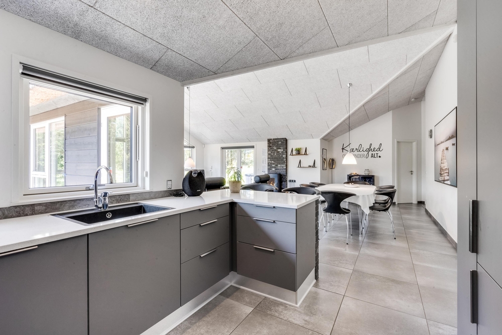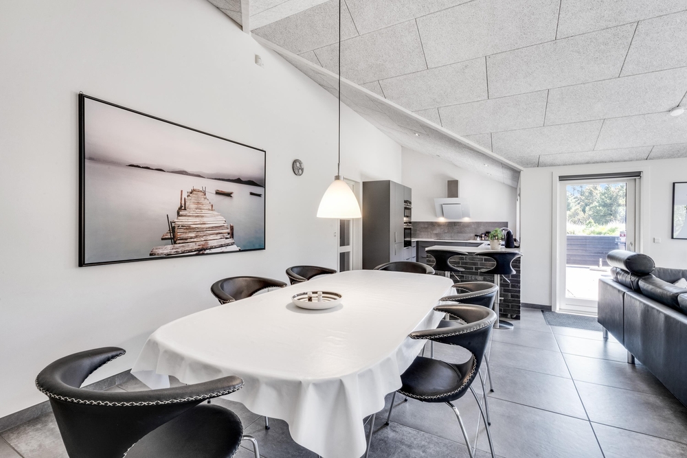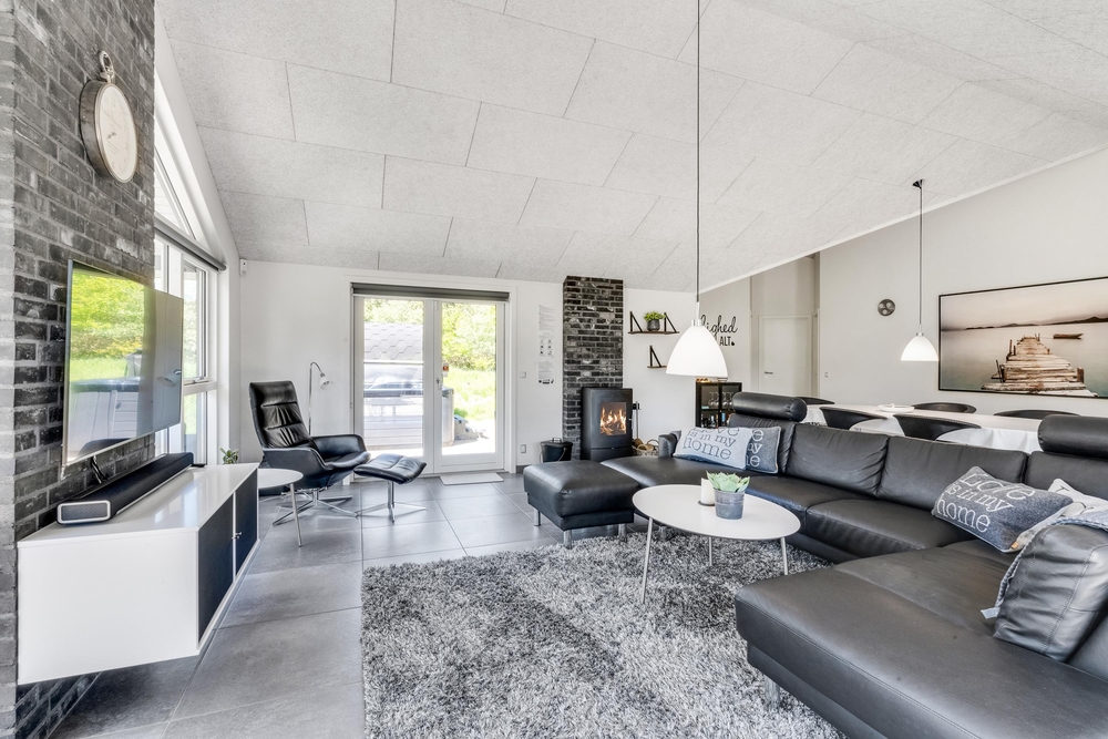 Das Herz des Ferienhauses ist der große geräumige Küchen-Essbereich, welcher die ganze Familie zur Zusammengehörigkeit einlädt. Das Ferienhaus ist modern und gemütlich eingerichtet ? mit nordischem Stil und einer klassischen Ferienhausatmosphäre. Die Kids können sich mit einem Brettspiel am Esstisch beschäftigen, während der Küchenchef der Familie in der sehr gut ausgestatteten Küche köstliches Essen zubereitet. Abends könnt ihr euch in dem komfortablen Sofa einen guten Film im Fernsehen anschauen, während der Kaminofen im Hintergrund knistert.