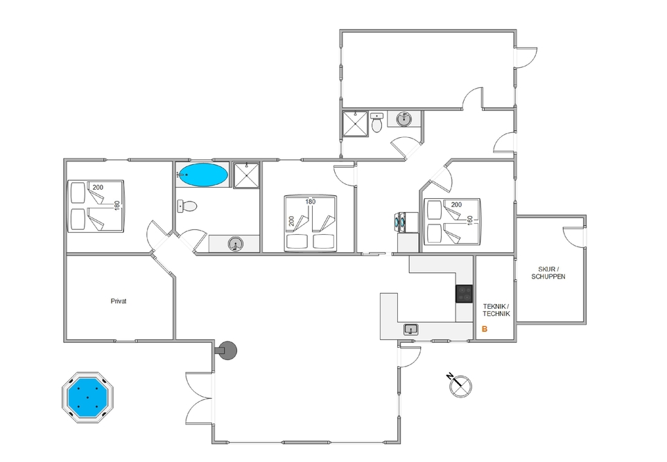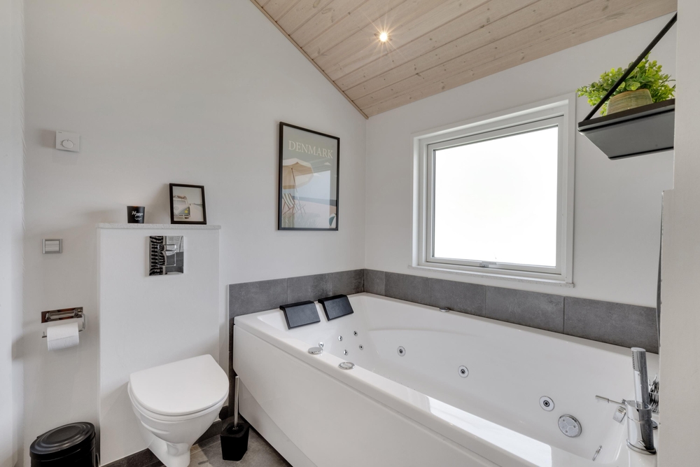 Die hellen Schlafzimmer sind mit bequemen Doppelbetten und viel Stauraum ausgestattet. Darüber hinaus verfügt das Ferienhaus über 2 schöne Badezimmer mit Dusche, WC und Waschbecken. Im größeren Badezimmer befindet sich der Whirlpool. Das Ferienhaus verfügt auch über die täglichen Helfer wie Geschirrspüler, Waschmaschine und Trockner ? und mit Fußbodenheizung im ganzen Haus habt ihr immer warme Füße.