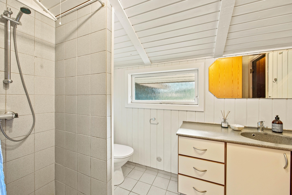 Im Badezimmer habt ihr neben einer Duschnische, Fußbodenheizung und der normalen Grundausstattung, auch eine Sauna zur Verfügung. Besonders schön ist so ein Saunabesuch nach einem ausgiebigen Spaziergang an der dänischen Nordseeluft, wenn der Westwind einen so richtig durchgepustet hat.