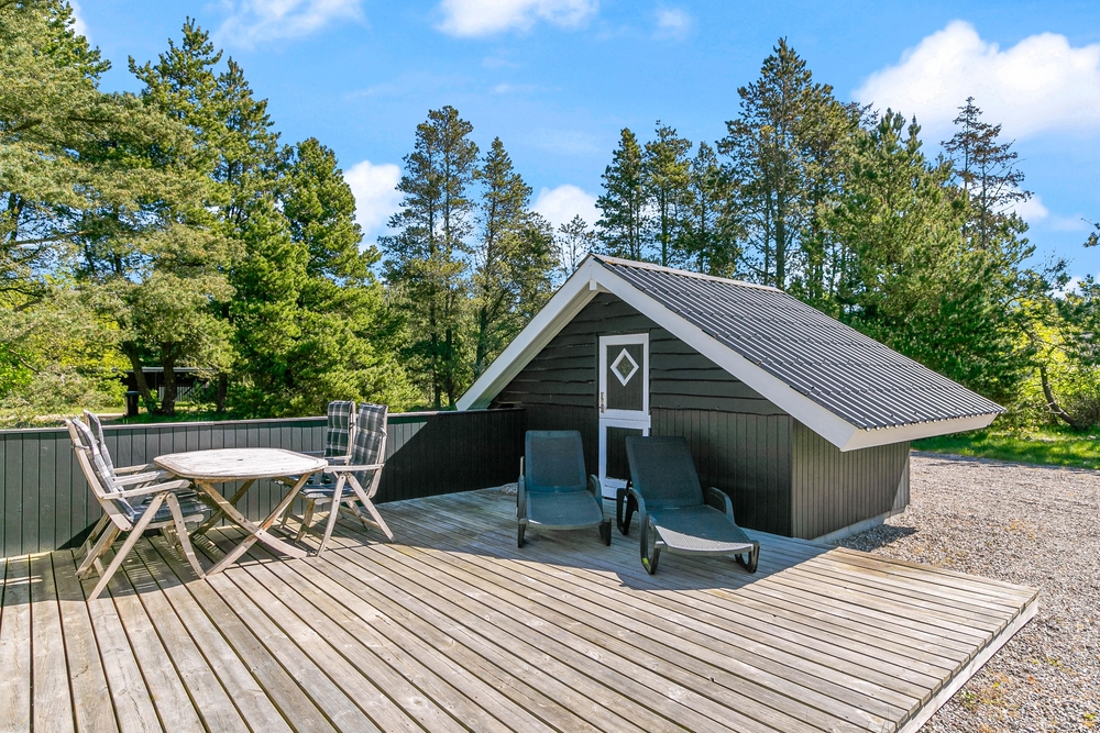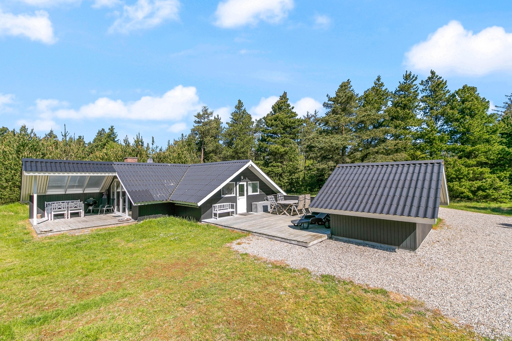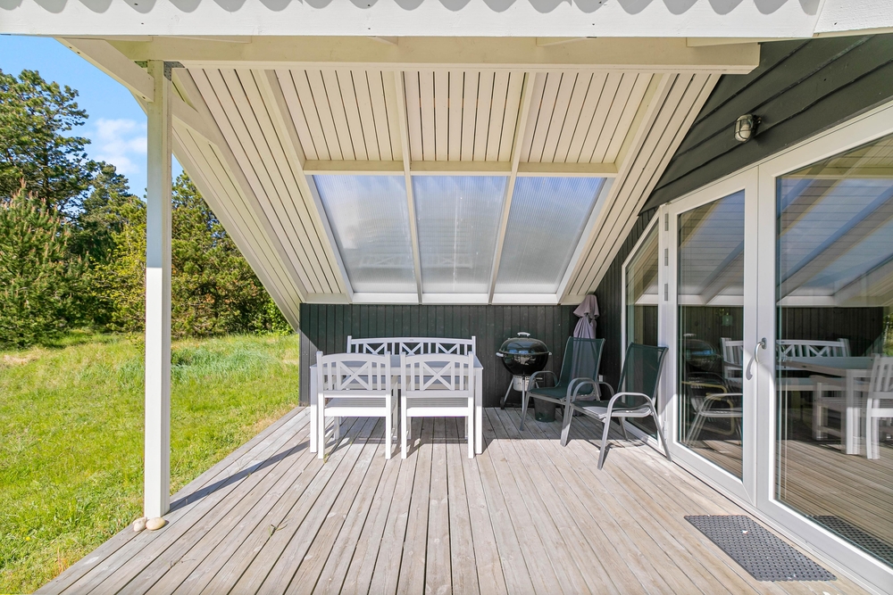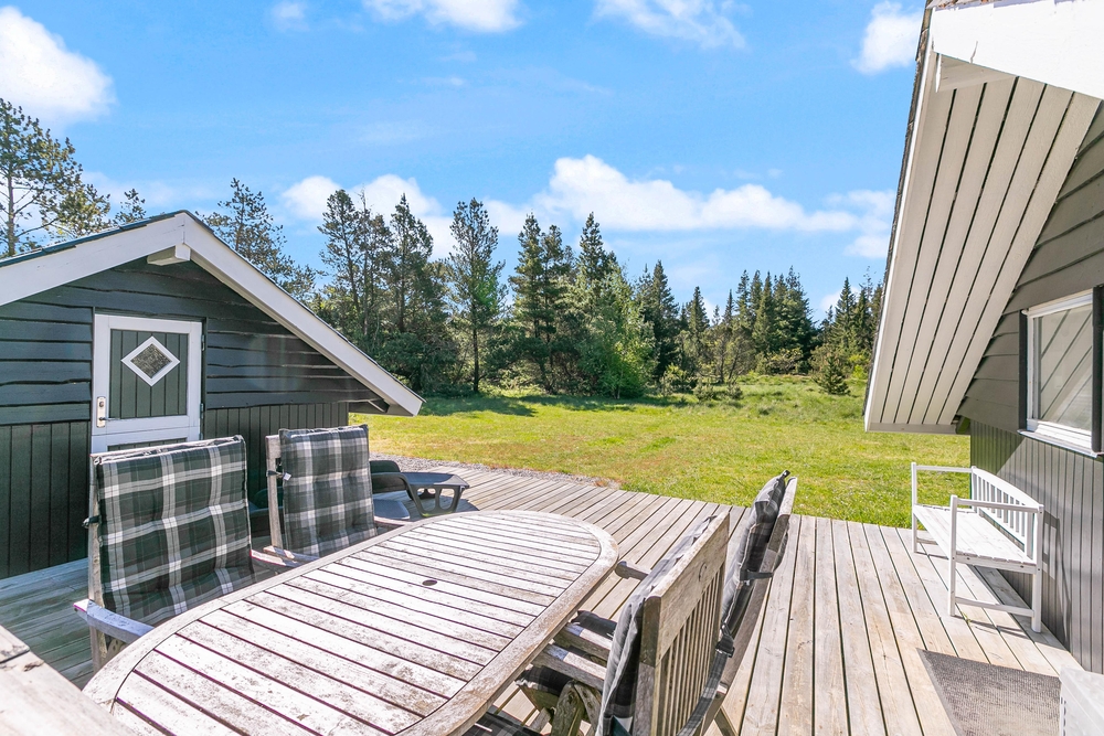 Der Außenbereich des Ferienhauses im Sdr. Skovvej 17 bietet zahlreiche Möglichkeiten, die Natur zu genießen und sich zu entspannen. Auf dem großzügigen Naturgrundstück könnt ihr die frische Luft und die Umgebung in vollen Zügen genießen. Die große offene Terrasse eignet sich gut für gesellige Stunden beim Grillen, während die abgeschirmte Terrasse einen ruhigeren Ort bietet, um ein Buch zu lesen oder einfach zu entspannen.