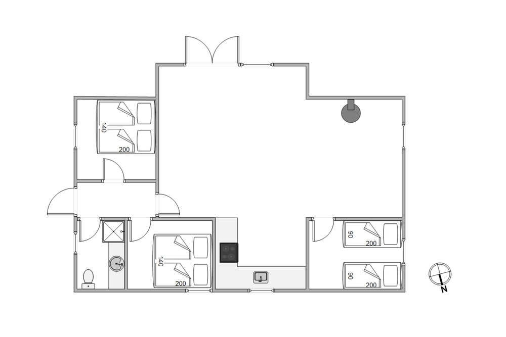 Der Innenbereich des Ferienhauses in Houstrup schafft eine angenehme und einladende Atmosphäre. Der zentrale Wohnbereich ist mit einem Kaminofen ausgestattet, der an kühleren Abenden für angenehme Wärme sorgt. Hier könnt ihr euch entspannen und gemeinsam einen Film schauen.