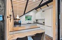 Die offene, modern ausgestattete Küche bietet alles, was ihr für die Zubereitung von Mahlzeiten benötigt. Eine integrierte Spülmaschine erleichtert das Aufräumen, sodass ihr mehr Zeit zum Entspannen habt. Der angrenzende Essbereich bietet ausreichend Platz für gemeinsame Mahlzeiten.