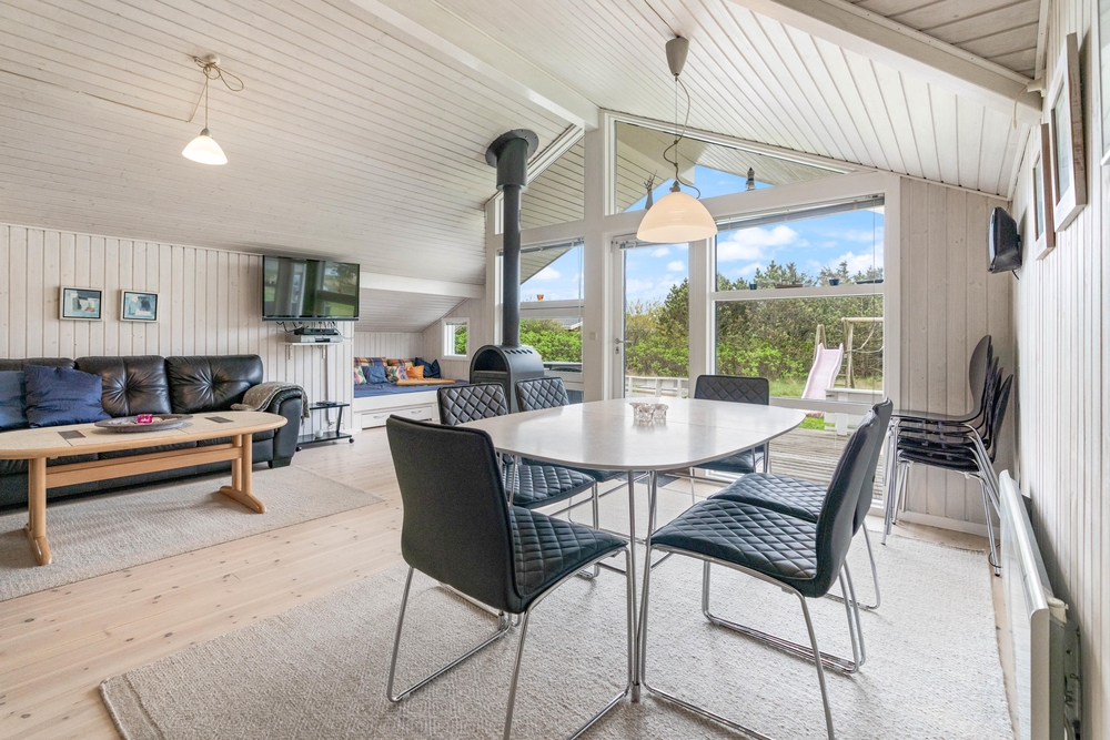 Im schönen Feriengebiet Bjerregård gelegen, befindet sich euer Ferienhaus auf der Landzunge Holmsland Klitt und ist somit nicht weit vom Wasser entfernt. Auf der einen Seite findet ihr die brausende Nordsee mit breiten Sandstränden, die zu langen Spaziergängen einlädt. Erfrischt euch in der Nordsee und spürt den Sand zwischen den Zehen, sammelt Muscheln und mit etwas Glück könnt ihr auch Bernstein finden.