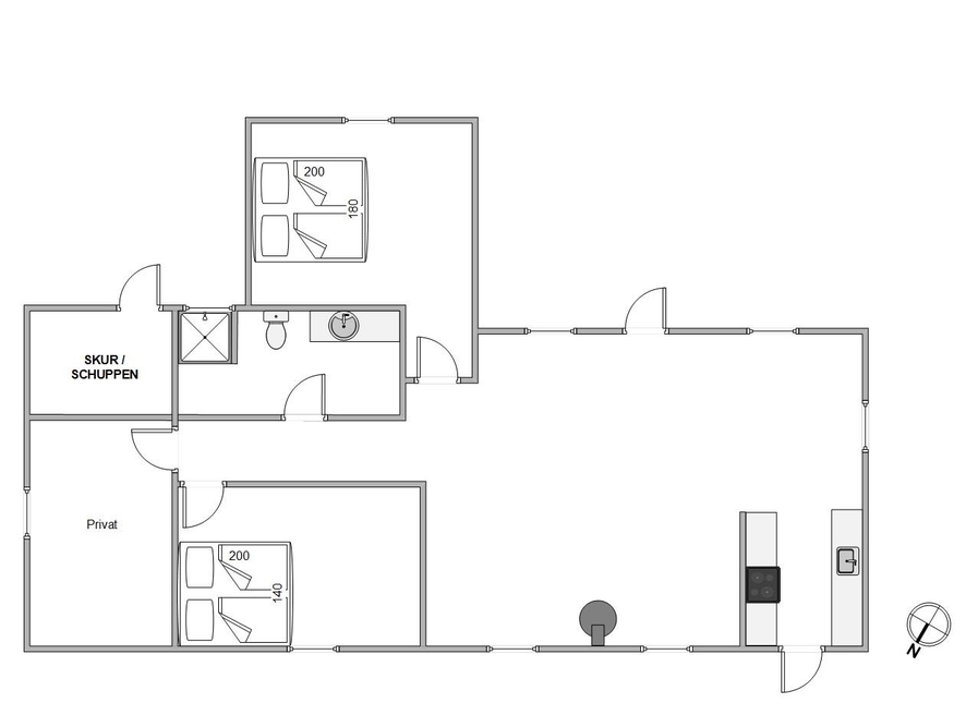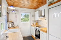 Die helle und liebevolle Einrichtung schafft eine gemütliche Stimmung im Ferienhaus. Viele Fenster sorgen für einen natürlichen Lichteinfall und runden das Erlebnis ideal ab. Am Abend könnt ihr in der schönen, offenen Küche eure Lieblingsspeisen zubereiten. Die Geschirrspülmaschine übernimmt natürlich den Abwasch.