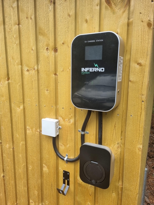 Die Lademöglichkeit für das Elektroauto ist eine Ladestation, relevantes Kabel ist mitzubringen.