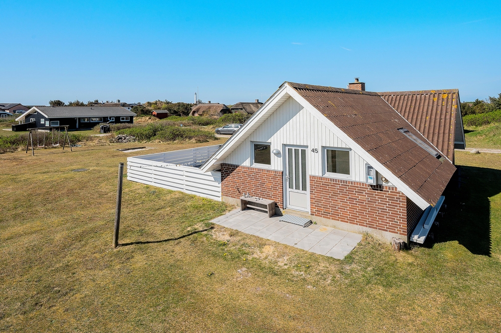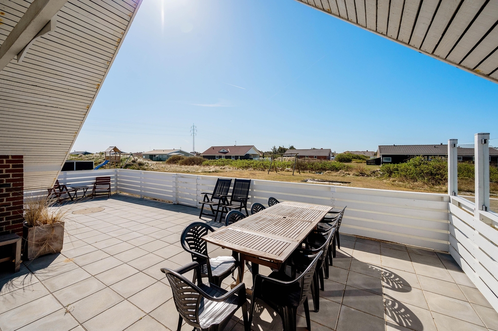 Vom Wohnraum aus habt ihr Zugang zur großen und geschlossenen Terrasse, teils windgeschützt und teil überdacht könnt ihr hier auch gern mal einen Tag am Haus verbringen. Auch an die kleinen Urlauber wurde hier gedacht, Sandkasten und Schaukel warten darauf, genutzt zu werden und sorgen mit Sicherheit für jede Menge Spaß.Am Abend lädt die Terrasse dazu ein, ein leckeres Essen auf dem Grill zuzubereiten und den Tag mit einem kühlen Getränk in der Hand ausklingen zu lassen.