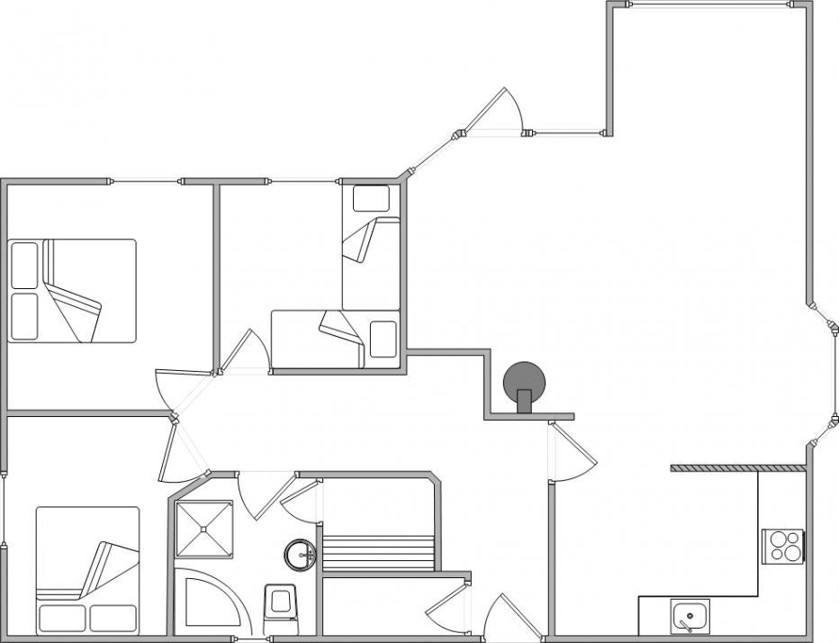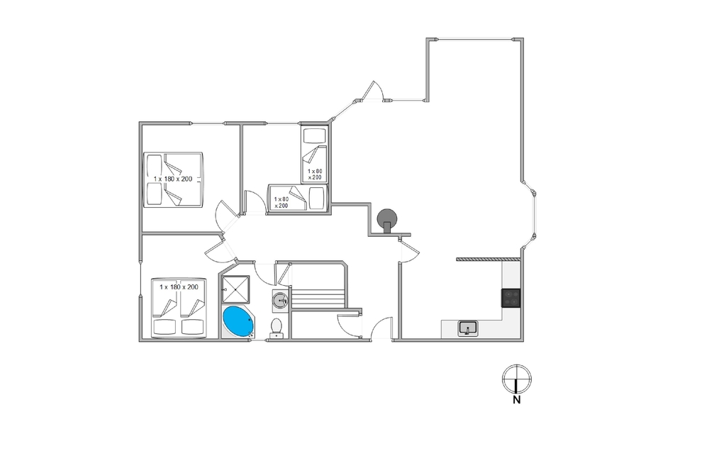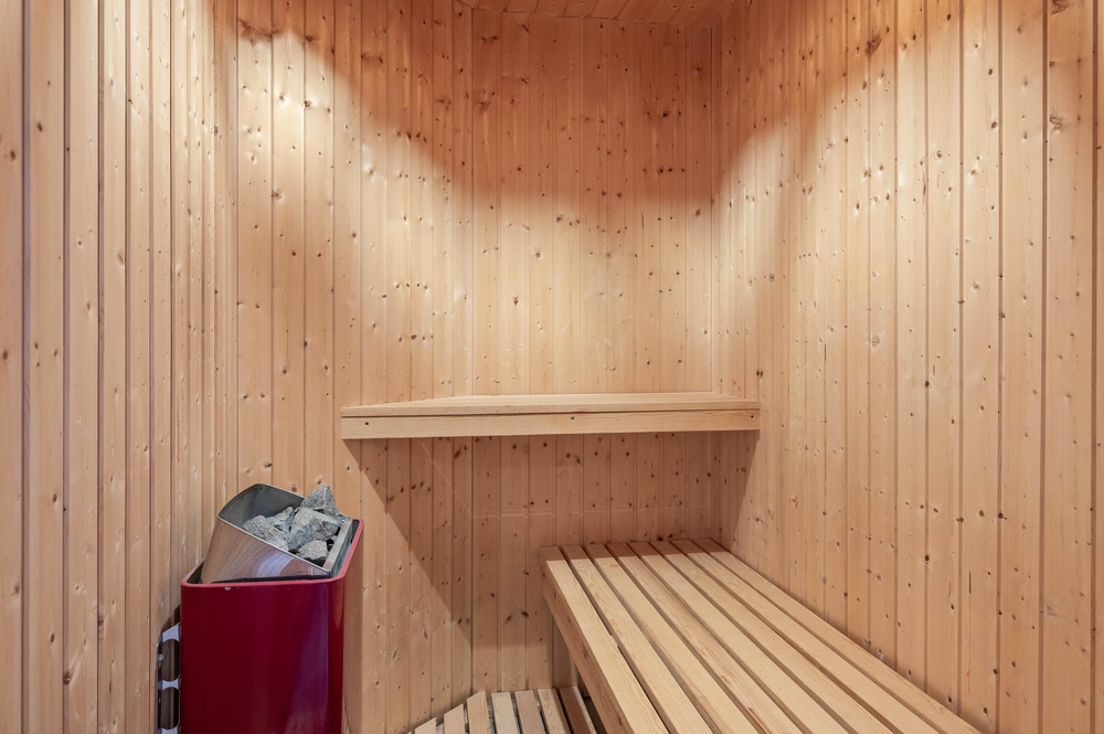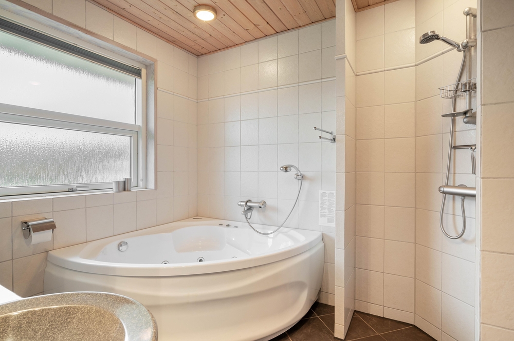Schönes Badezimmer mit Whirlpool und Sauna. Im Wohnbereich findet Ihr hohe Decken, was den Raum geräumiger wirken lässt. Die Küche und der Essbereich wurden offen zum Wohnbereich gestaltet, wo der Kamin für gemütliche Stunden auf euch wartet. Außerdem gibt es noch einen Flachbildschirm-TV und kostenlosen Internetzugang im Haus.