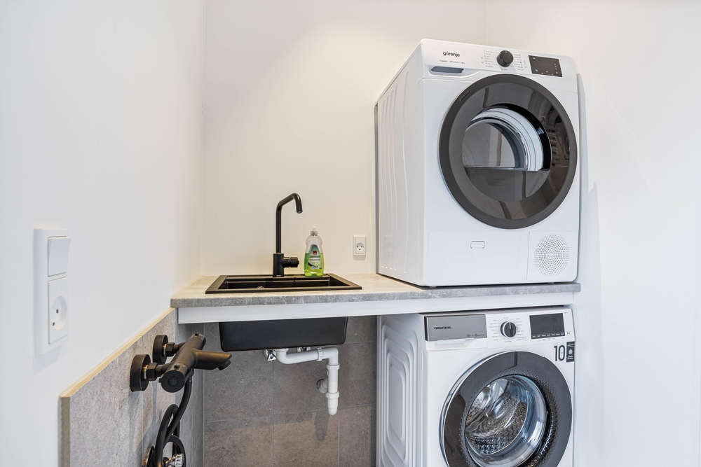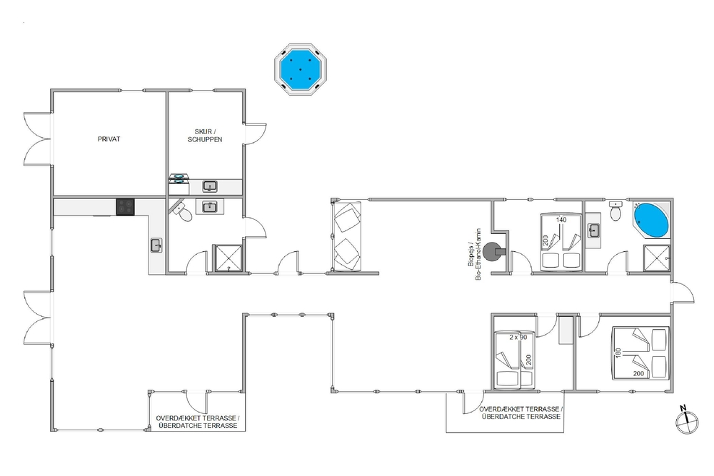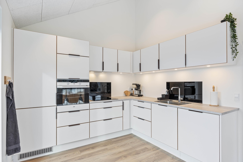Wenn ihr das Ferienhaus betretet, werdet ihr von einer modernen Einrichtung begrüßt, die dadurch unterstützt wird, dass das Ferienhaus im Jahr 2024 fertig gebaut wurde. Das Ferienhaus besteht aus 2 Teilen, die durch einen Gang miteinander verbunden sind. Dies ist besonders praktisch, wenn ihr einen gemeinsamen Spieleabend veranstaltet und die Kinder schon schlafen, da die Küche sowie der Essbereich in der einen Hälfte des Ferienhauses zu finden sind, während sich das Wohnzimmer und die Schlafzimmer in der anderen Hälfte befinden. Die beiden Badezimmer im Ferienhaus sind auf beide Teile des Ferienhauses verteilt. Das gesamte Ferienhaus ist mit einer Fußbodenheizung ausgestattet, die über die energiefreundliche Erdwärme gesteuert wird. Für eine gemütliche Stimmung sorgt im Wohnzimmer der Bioethanolkamin.