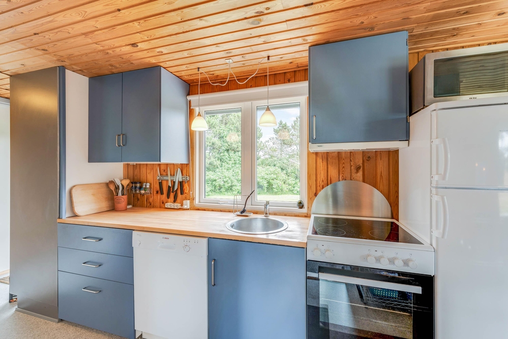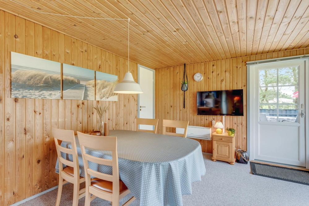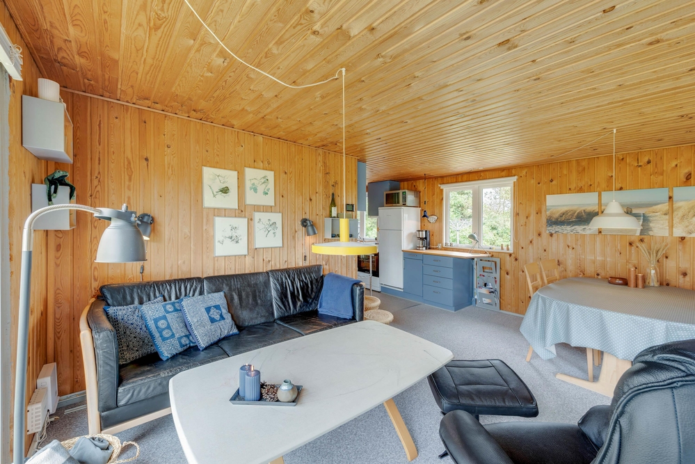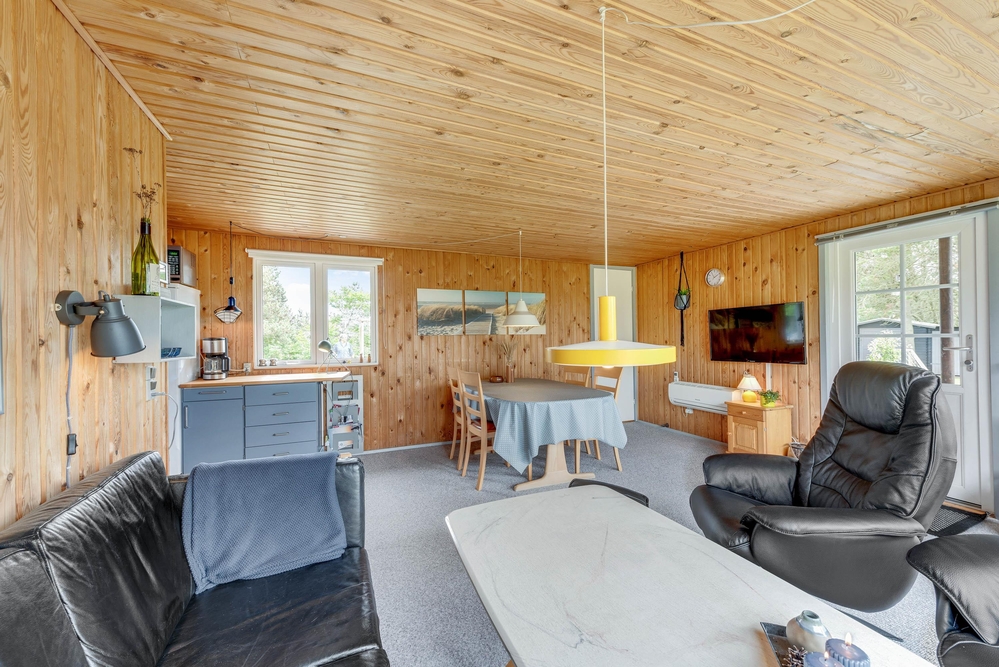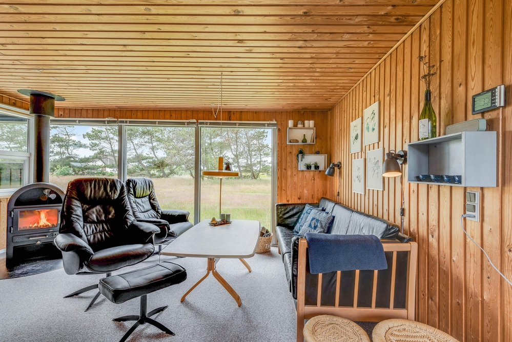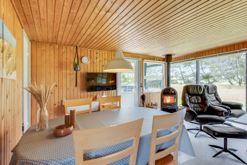 Hier wirst du dich mit deiner Familie von Anfang an wohl fühlen, denn das Ferienhaus im Sivsangervej 29 in Lodbjerg Hede wurde liebevoll und mit vielen Details eingerichtet. Die Holzoptik verleiht dem Haus einen charmanten Stil. Es gibt einen großen Gemeinschaftsbereich, der aus dem Wohnzimmer, der Küche und dem Essbereich besteht. Hier wurde auch der Kaminofen installiert, welcher dem Haus Wärme und eine schöne Atmosphäre spendet. Auf dem Sofa und am Esstisch könnt ihr spannende Brettspiele spielen oder die nächsten Urlaubstage planen.