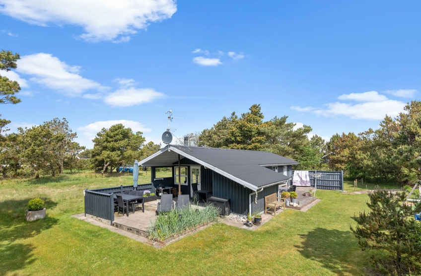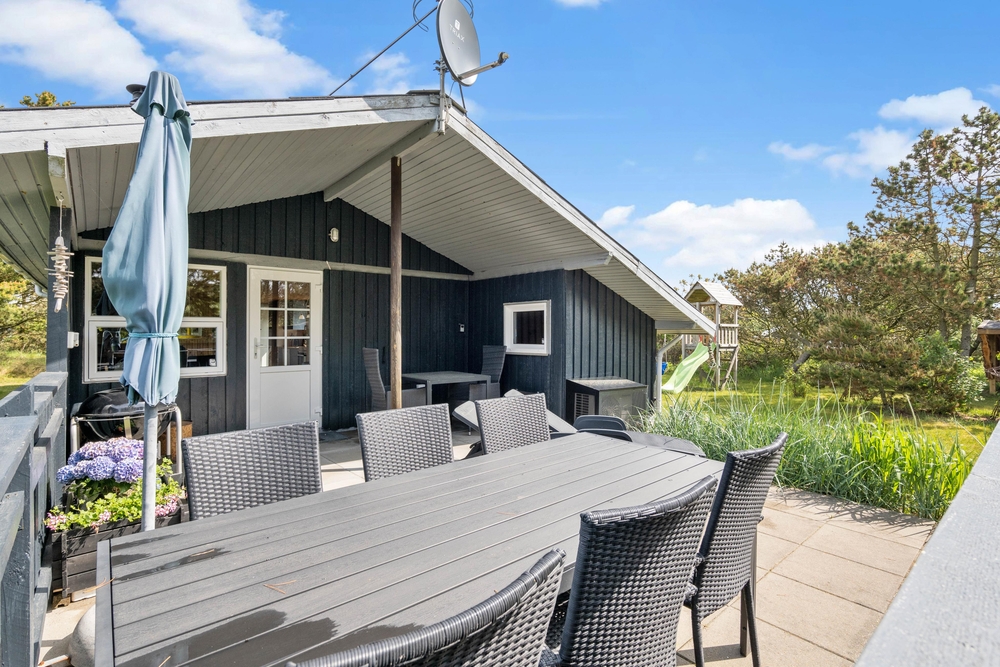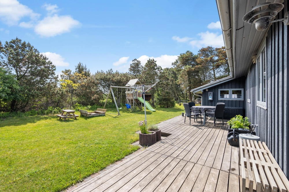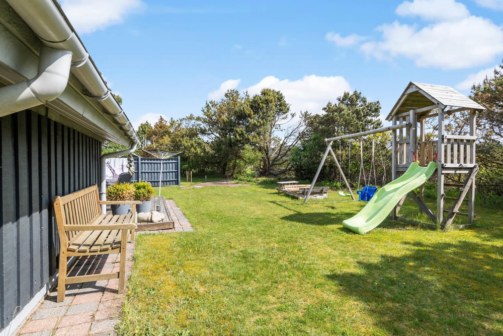 Dieses tolle Ferienhaus liegt in Lodbjerg Hede und bietet besonders für eine Familie eine tolle Zeit. Neben dem Kaminofen im Wohnbereich ist das Haus gemütlich eingerichtet und die Holzoptik erinnert einen an ein klassisches Ferienhaus. Von der Terrasse aus können die Eltern den Kindern beim Toben auf den Spielgeräten zuschauen und entspannt die Natur genießen.