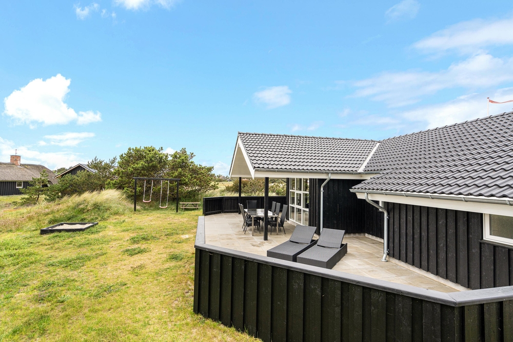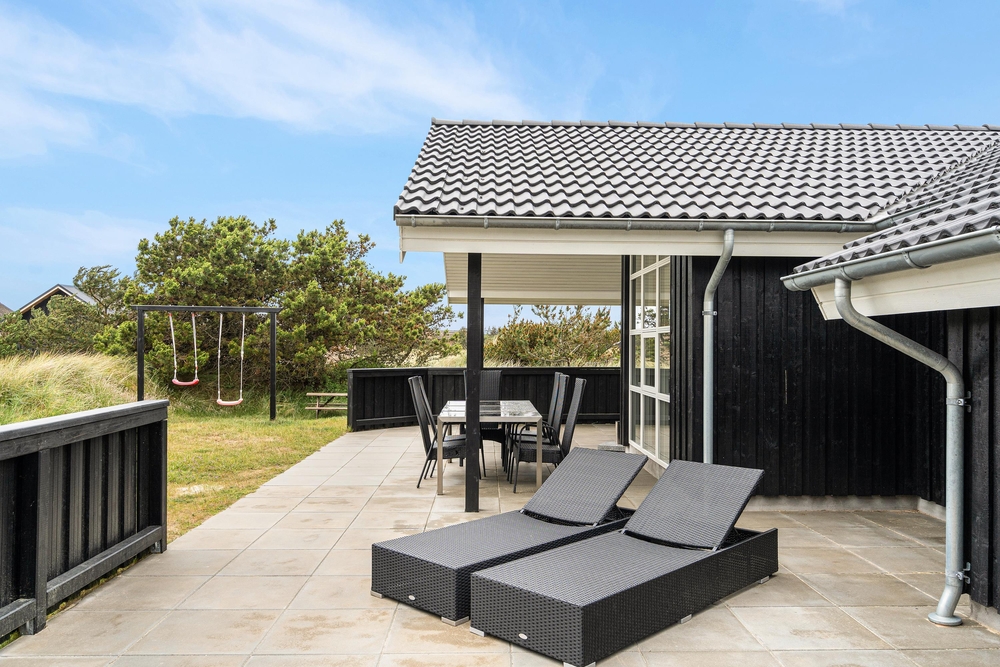 Die grosse Terrasse lädt sowohl zum Sonnenbaden als auch leckeren Grillabenden ein. Oder einfach einmal mit einem Buch in der Hand, im Liegestuhl sitzend, entspannen und sich dem Meeresrauschen in der Ferne anvertrauen ? Entspannung pur. Für die Kinder gibt es eine Schaukel sowie Sandkasten, um sich auszupowern, falls der Strandspaziergang noch nicht ausreichend war.