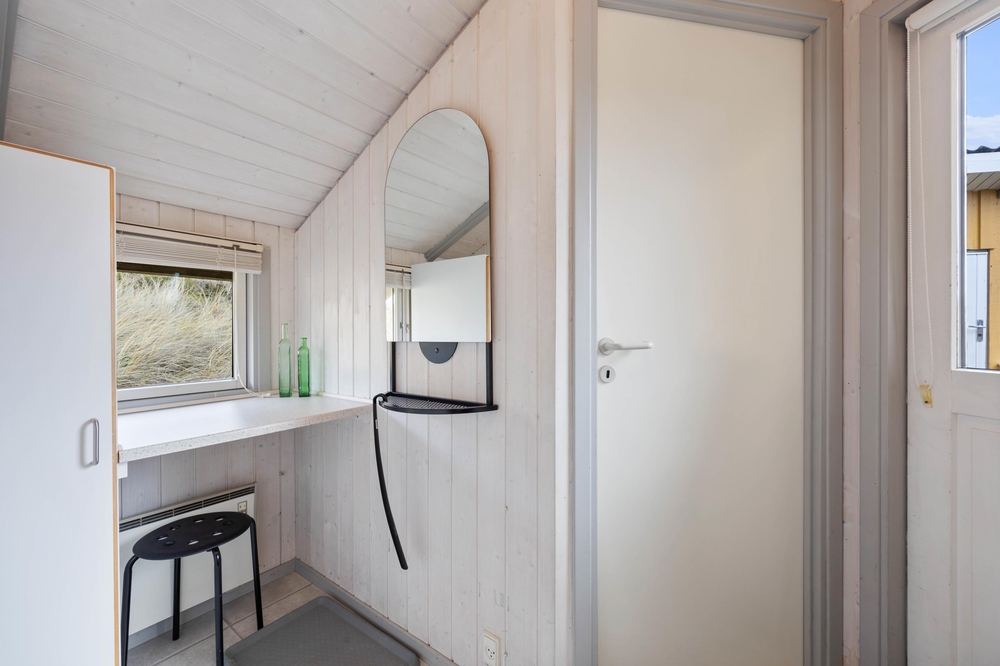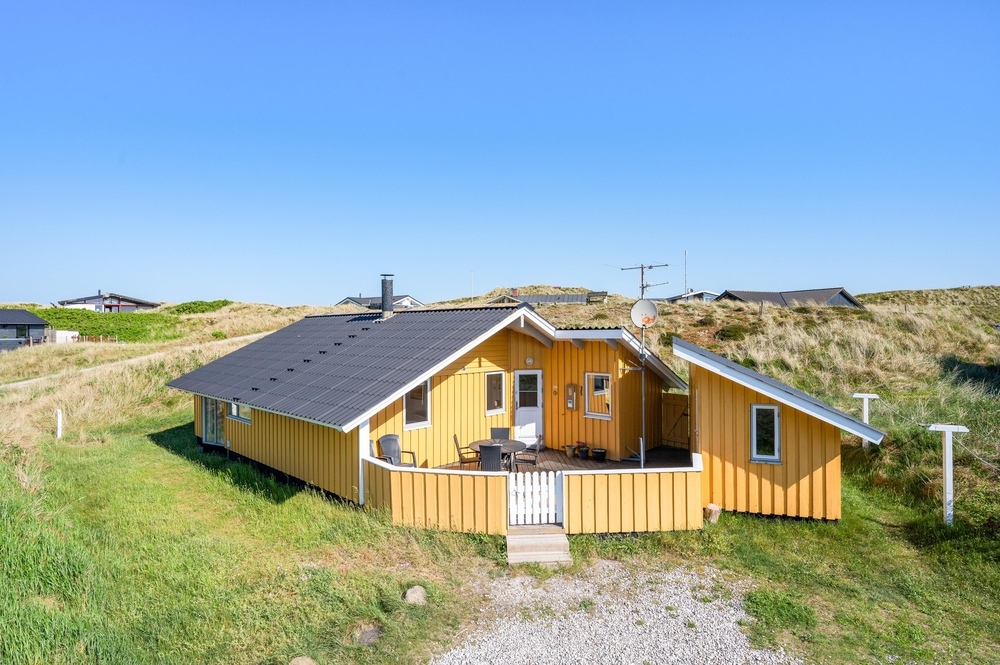 Dieses schöne Ferienhaus liegt in einem unserer schönsten Gebiete. Skodbjerge hat eine hügelige Landschaft und große, schöne Heidegebiete. Der Himmel ist weit und es gibt viel frische Luft. Von hier aus ist es nicht weit bis zur Nordsee, die nur 500 Meter von eurem Ferienhaus entfernt liegt.