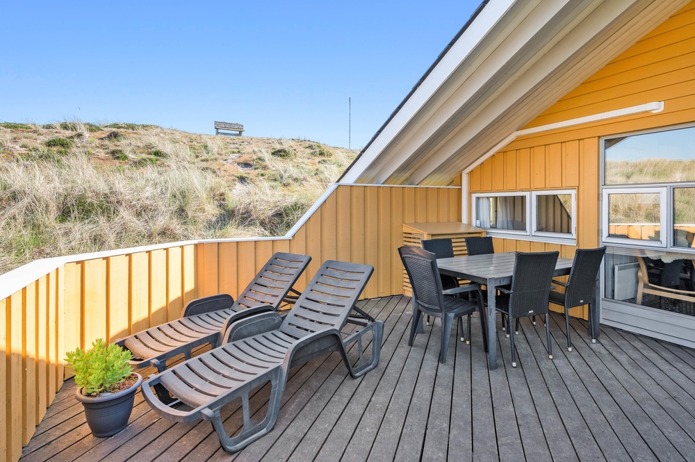 Im Außenbereich findet ihr zwei Holzterrassen, die beide eingezäunt sind, so dass ihr eure Kleinen oder eure Hunde frei herumlaufen lassen könnt. Beginnt den Tag mit einem Morgenkaffee auf der schönen Ostterrasse, wo ihr fast immer windgeschützt seid. Gemütliche Nachmittage und Grillabende genießt ihr am besten auf der windgeschützten und teilweise überdachten Westterrasse, von der ihr auch den Sonnenuntergang genießen könnt.