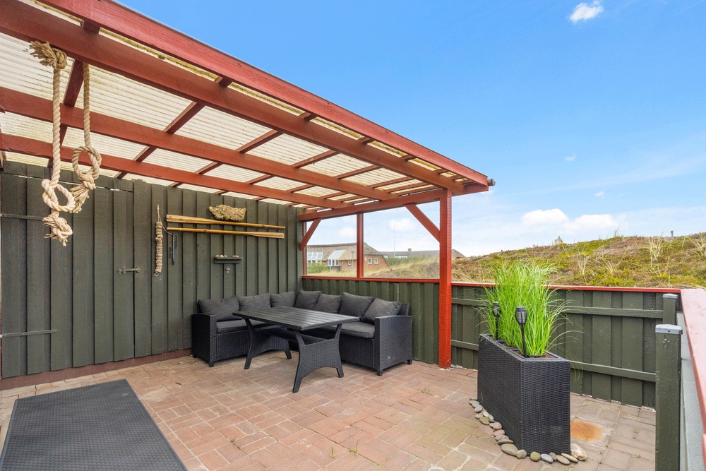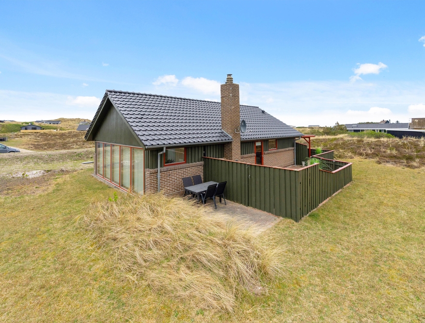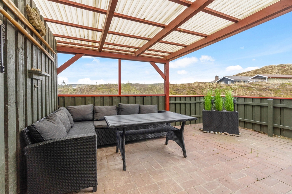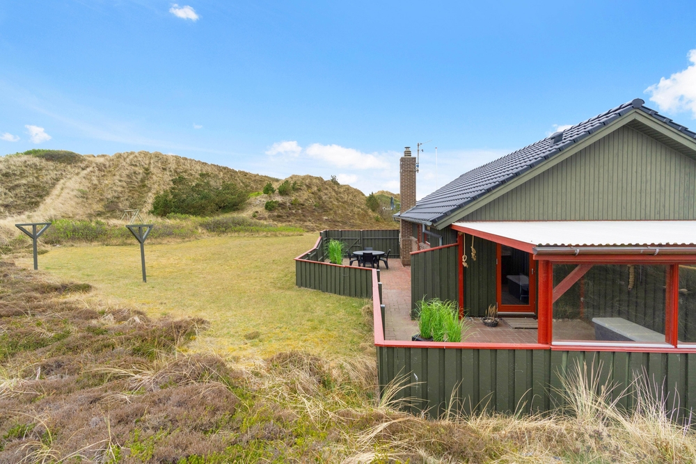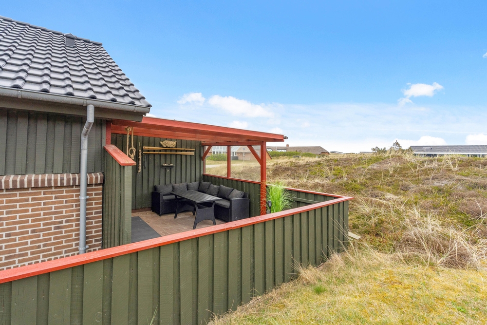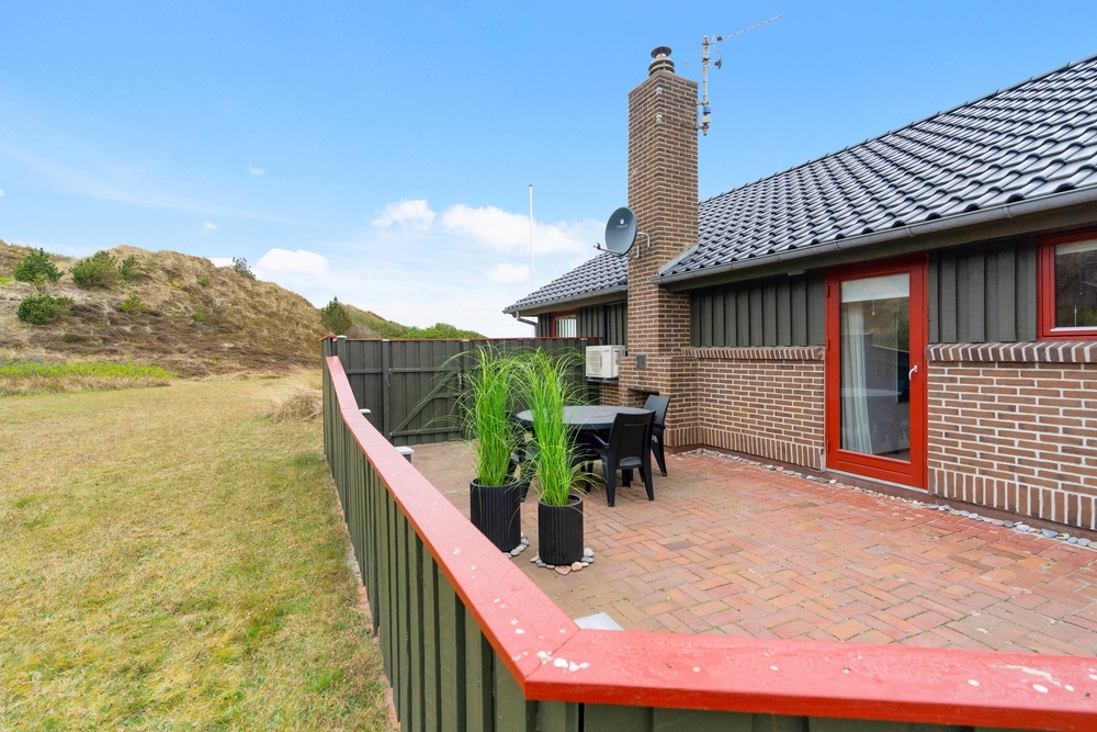 Im Außenbereich eures gemütlichen Ferienhauses erwartet euch eine geschlossene, teilweise überdachte und abgeschirmte Terrasse auf dem wunderschönen Naturgrundstück in Skodbjerge. Auf den Sonnenliegen könnt ihr hier ungestört die Sonnenstrahlen bei einem kühlen Getränk und eurem Lieblingsroman oder den tollen Ausblick auf die Dünen genießen.