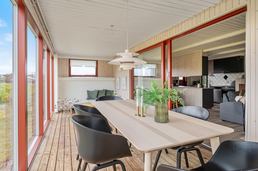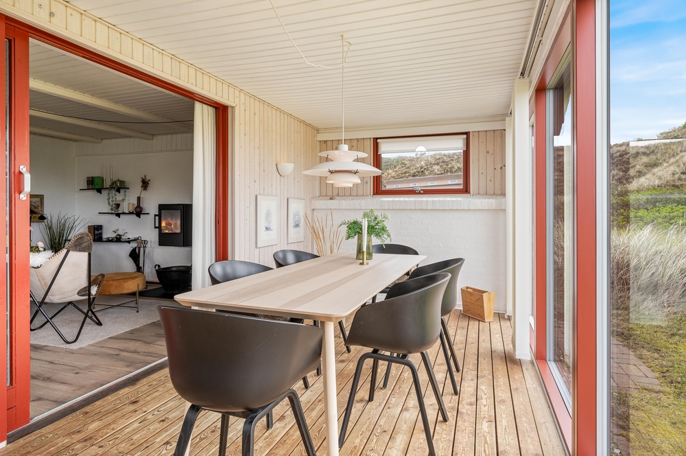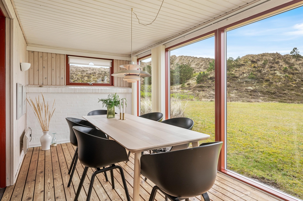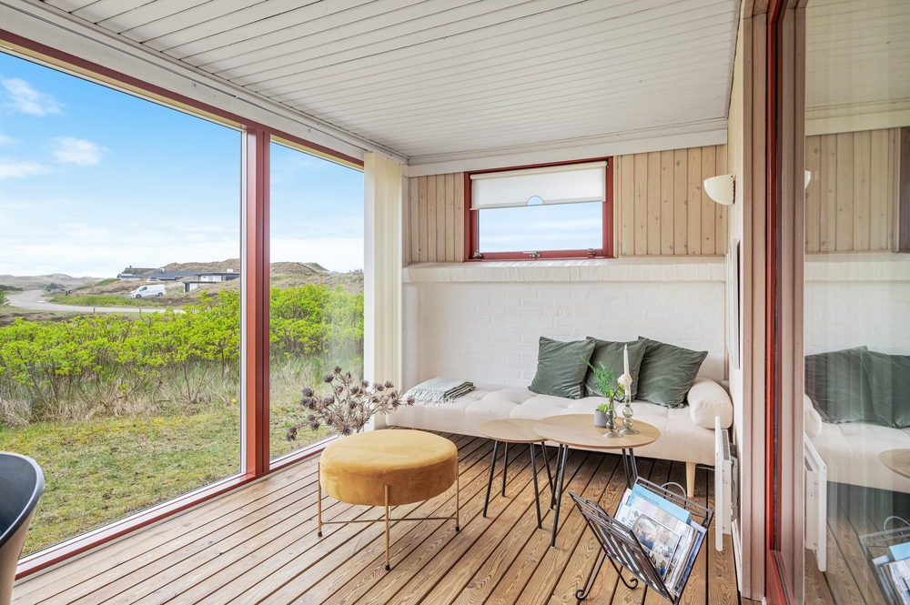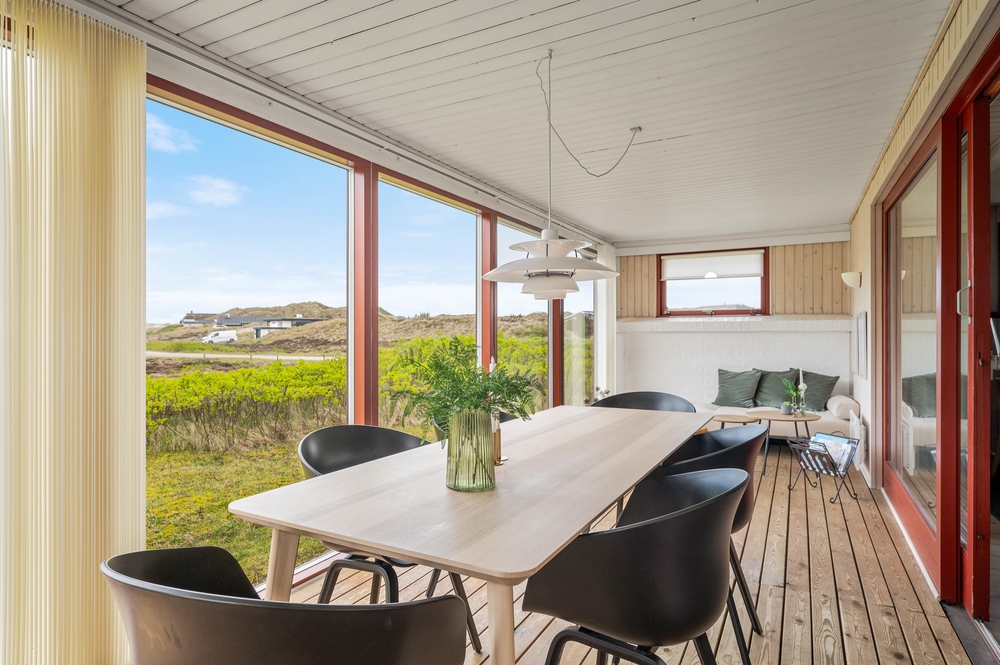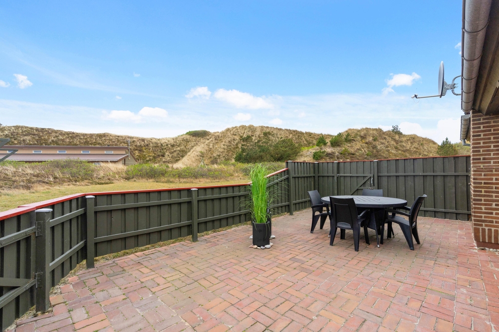 Im Außenbereich eures gemütlichen Ferienhauses erwartet euch eine geschlossene, teilweise überdachte und abgeschirmte Terrasse auf dem wunderschönen Naturgrundstück in Skodbjerge. Auf den Sonnenliegen könnt ihr hier ungestört die Sonnenstrahlen bei einem kühlen Getränk und eurem Lieblingsroman oder den tollen Ausblick auf die Dünen genießen.