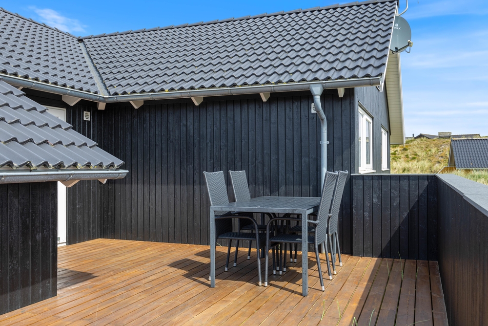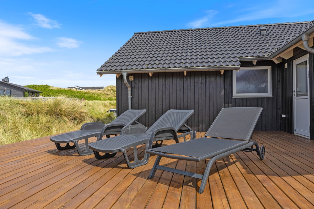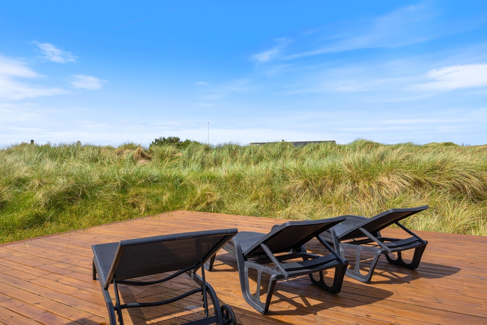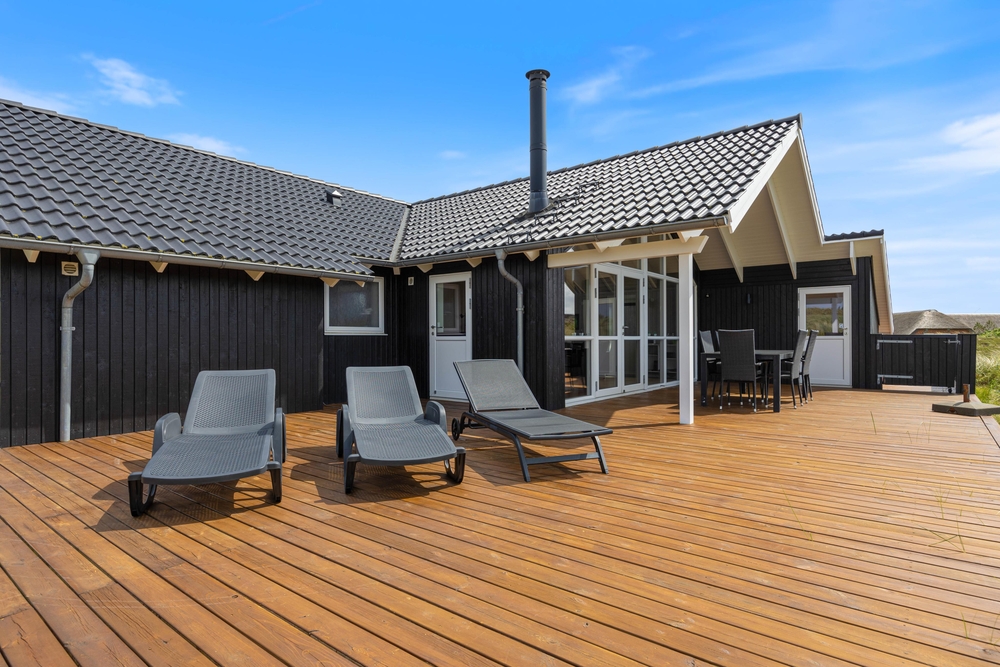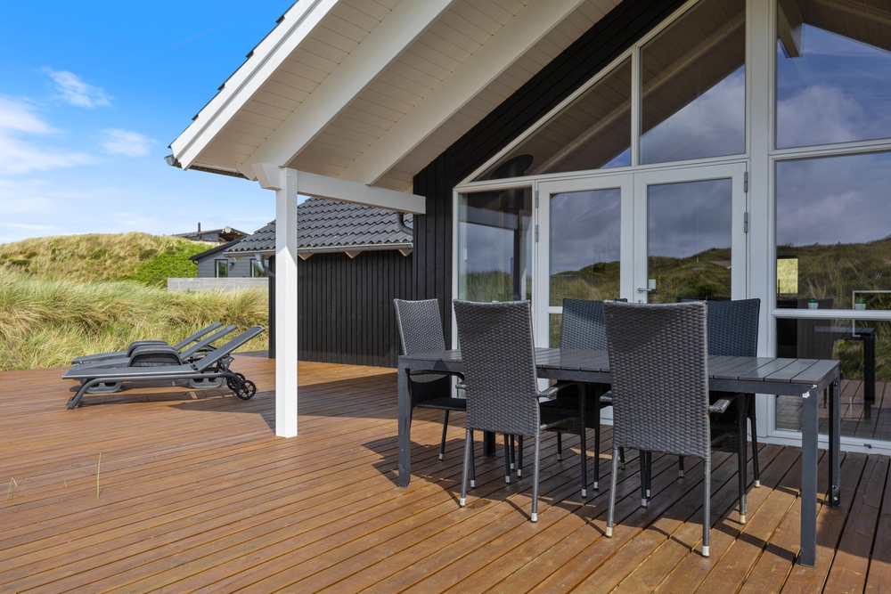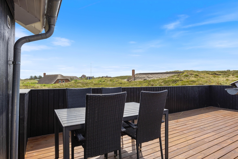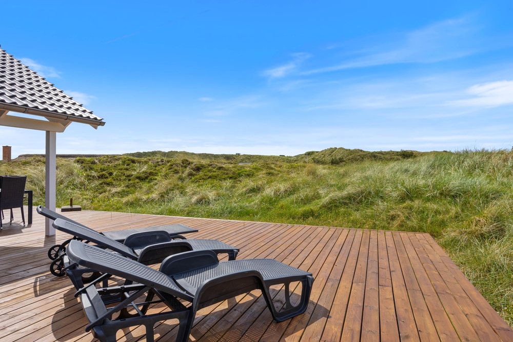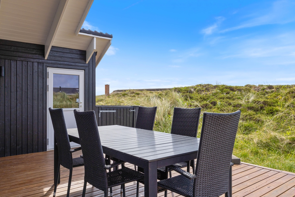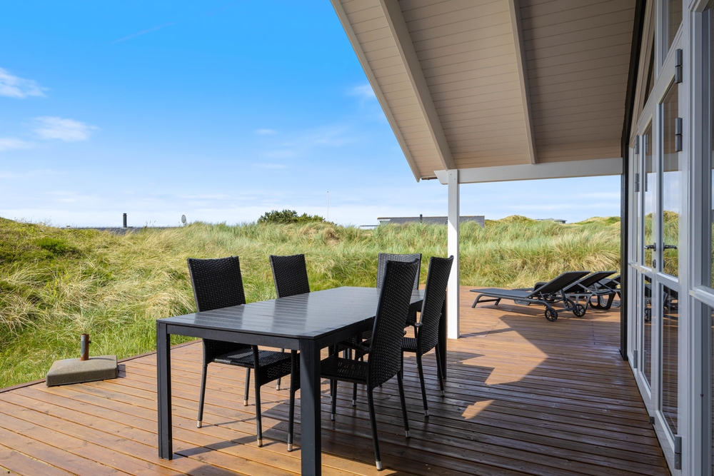 Vom Wohnzimmer aus erreicht ihr die Hauptterrasse, die teils überdacht wurde, so dass ihr es euch hier bei jedem Wetter bequem machen könnt. Genießt die frische Meeresluft und den Ausblick auf die Dünen und lehn euch in den komfortablen Terrassenmöbeln zurück. Ein herrlicher Ort, um einfach mal die Seele baumeln zu lassen. Am Abend könnt ihr ein leckeres BBQ veranstalten und so gemeinsam den Tag ausklingen lassen.