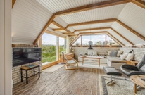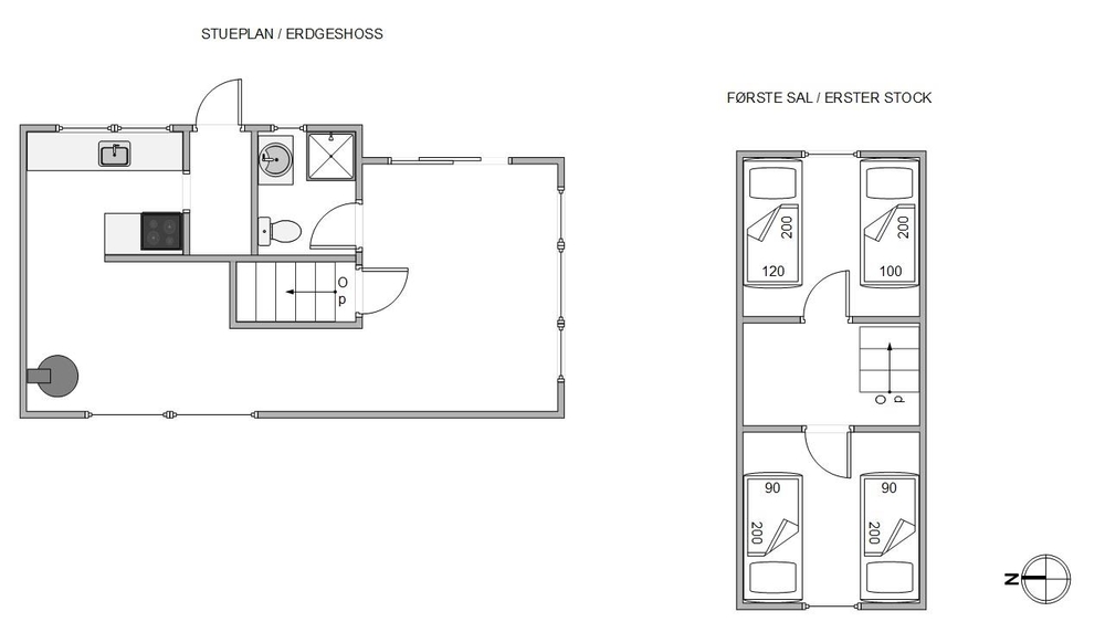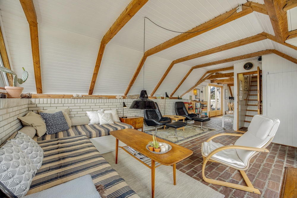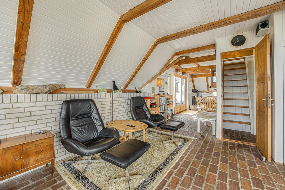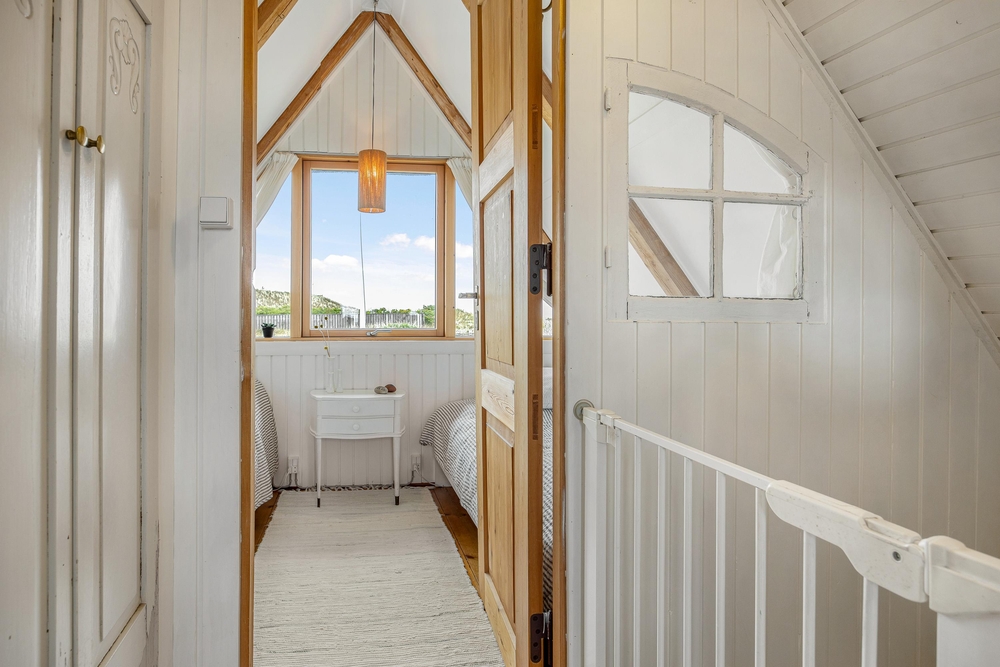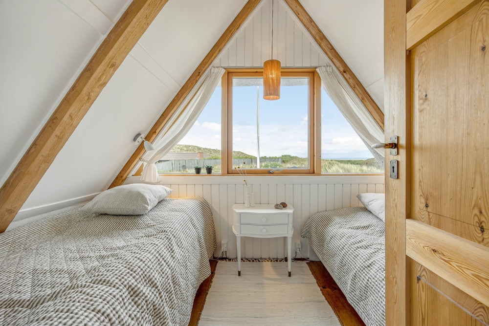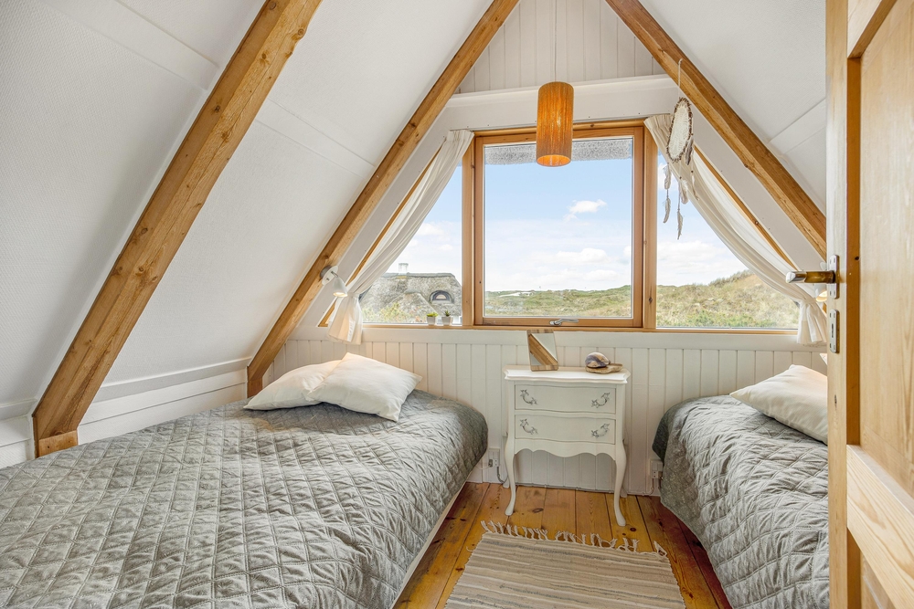 Durch die energiesparende Wärmepumpe lässt sich das Ferienhaus zusätzlich beheizen. Über die schmale, steile Treppe gelangt ihr in den oberen Bereich und zu den zwei Schlafzimmern mit jeweils 2 Einzelbetten. Von dort aus könnt ihr die Aussicht aufs Wasser genießen.