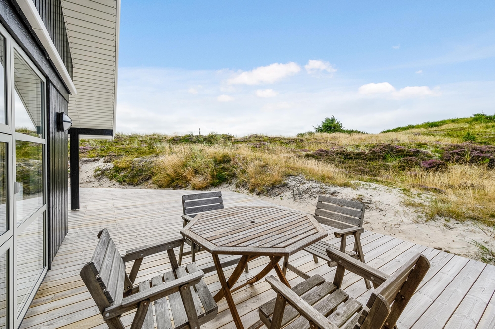 Das Ferienhaus liegt in Skodbjerge dicht an der Heidelandschaft, durch die ein Naturwanderweg führt. Also ein idealer Standpunkt, um mit dem Rad oder zu Fuß die imposante Natur zu erleben, wenn gerade im Spätsommer die Heide blüht. Oder ihr macht einen ausgiebigen Spaziergang am Strand und geht auf Muschelsuche, während die frische Brise der Nordsee euch um die Nase weht.
