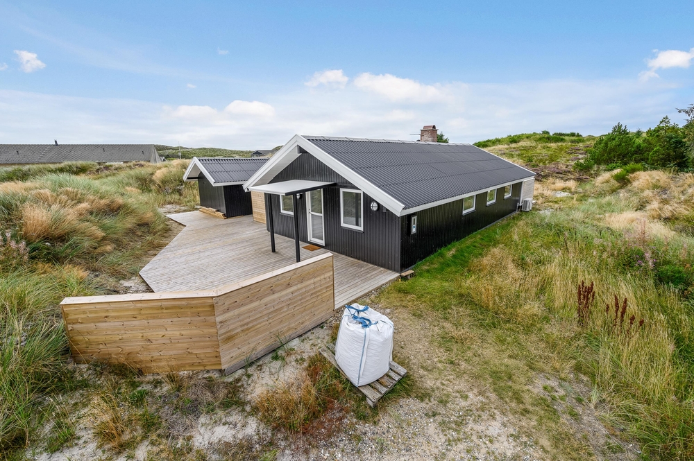Dieses im Frühjahr 2020 renovierte Ferienhaus mit ungestörter Terrasse findet ihr im Skodbovej 87 in Skodbjerge an der schönen dänischen Westküste. Ideal für eine kleine Familie oder ein Urlaub zu zweit. Das Ferienhaus liegt nahe der imposanten Dünen- und Heidelandschaft und nur 500 Meter vom Strand entfernt.
