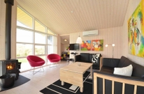 Schönes Ferienhaus in Houvig, 2012 aus hochwertigen Materialien gebaut. Das Haus liegt strandnah und hat eine energiesparende Wärmepumpe. Die Einrichtung ist geschmackvoll und modern; es glänzt mit einem schönen Badezimmer und einem gemütlichem Wohnzimmer in westlicher Lage, sowie schicken Möbeln.
