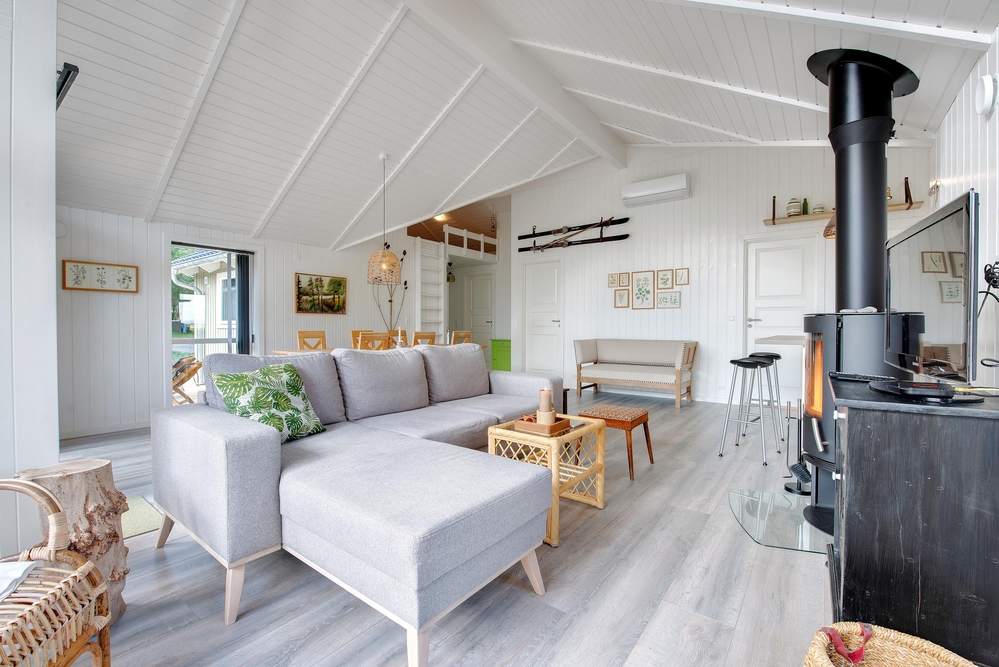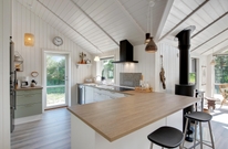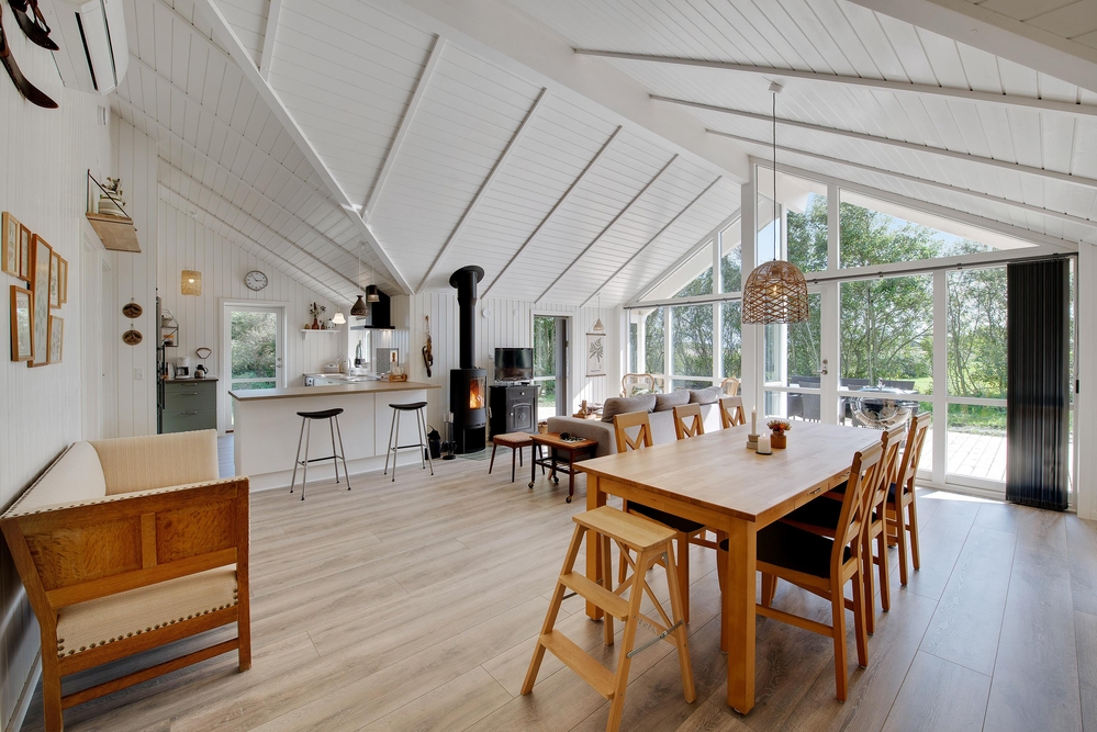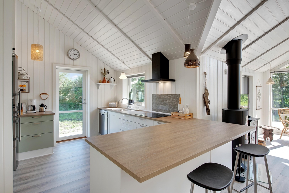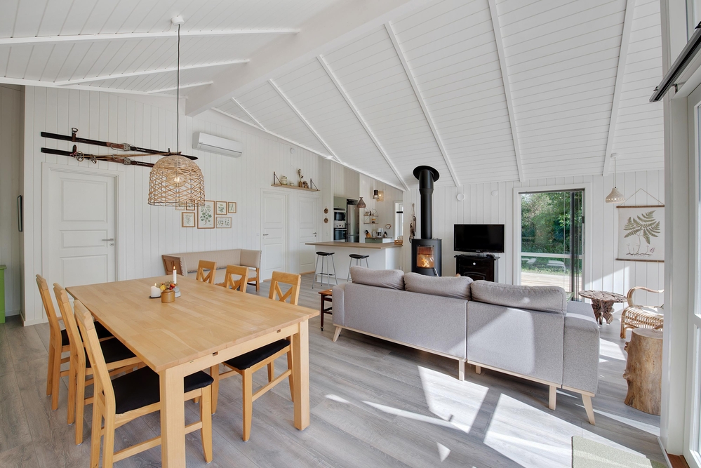 Du suchst mit deiner Familie oder mit deinen Freunden ein Ferienhaus, in dem man sich sofort in typisch dänischer Atmosphäre wohl fühlt? Dann bist du hier genau richtig. Im großen Gemeinschaftsraum wurden das Wohnzimmer mit der offenen Küche kombiniert und bildet somit das Herz des Hauses. Hier könnt ihr zusammen kochen, essen, dem Knistern des Kaminofens lauschen oder lange Spielabende am Esstisch abhalten. Durch die großen Fenster kommt viel Licht ins Haus und überall sind kleine schöne Details.