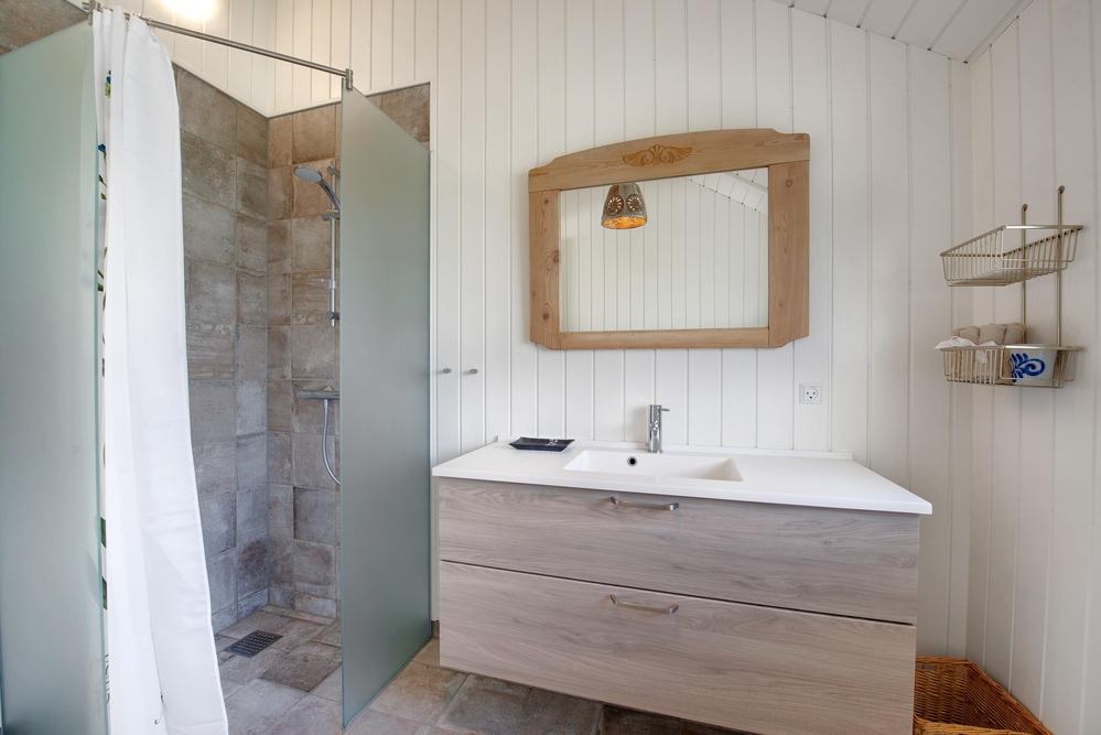 Die Küche ist groß und gut ausgestattet, sodass jeder Hobbykoch im Urlaub neue Rezepte ausprobieren kann. Aufgrund der Größe kann man auch wunderbar gemeinsam das Essen vorbereiten. Weiterhin gibt es ein Badezimmer und eine Gästetoilette, die jeweils mit einer Fußbodenheizung ausgestattet sind.
