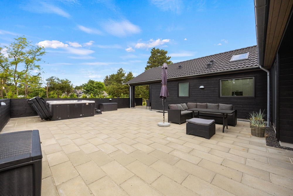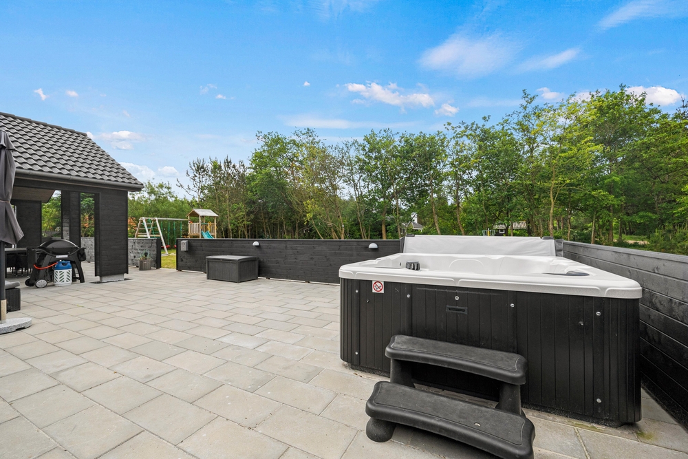 Die große Terrasse des Ferienhauses lädt zu vielen gemütlichen und erholsamen Stunden ein. Auf der schönen Terrasse befindet sich sowohl ein Außenwhirlpool, welcher viel Entspannung bietet und eine Außendusche, unter der ihr euch gerade an sommerlichen Tagen erfrischen könnt. Beachtet bitte, dass die Außendusche von April bis November zur Verfügung steht.