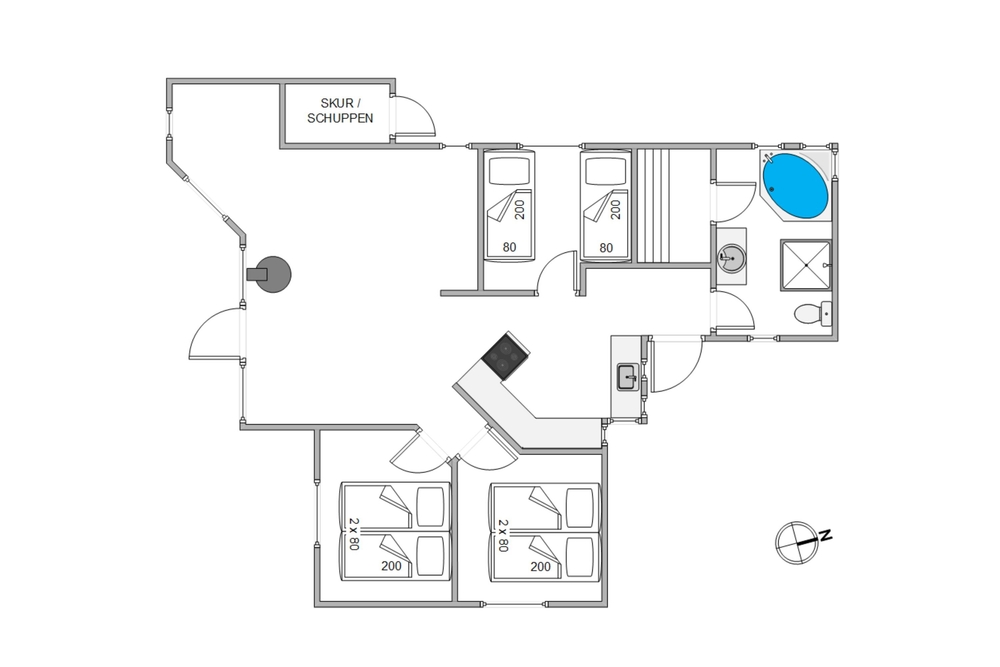 Dieses gemütliche Nichtraucherhaus im Skovvang 23, steht eingerahmt von den grünen Bäumen des Waldes auf einem grossen Naturgrundstück. Das perfekte Ferienhaus für alle die sich Ruhe und Erholung wünschen. Bis zu 6 Personen und 2 Hunde sind hier herzlich willkommen. Der Whirlpool und die hauseigene Sauna sind Garanten für Entspannung und Wellness.