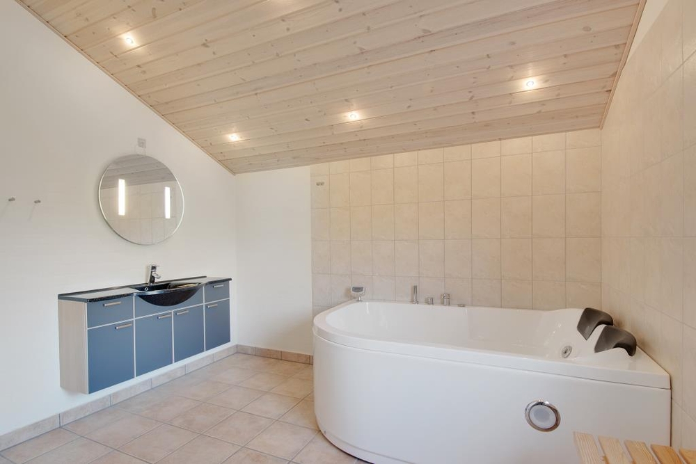 Im großen Badezimmer stehen Sauna und Whirlpool zur Verfügung, um sich nach einem langen, spannenden Tag an der frischen Luft zu entspannen. Hier bietet sich die Möglichkeiten, die Seele richtig baumeln zu lassen. Gemeinsame Abende vorm Kamin runden das Entspannungsangebot ab. Zusätzlich steht eine energiesparende Wärmepumpe zum Heizen zur Verfügung.