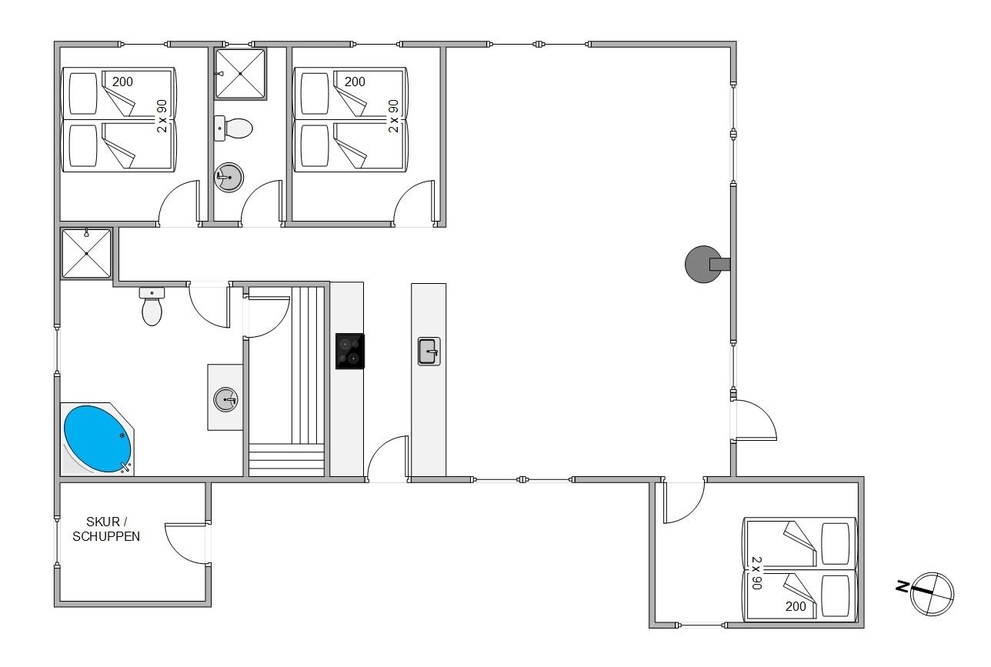 Ausflugsziele gibt es viele in Houstrup und der natrurschönen Umgebung, und das Ferienhaus steht nicht weit weg vom örtlichen Kaufmann oder nur eine kurze Autofahrt vom fantastischen Sandstrand sowie der charmanten Natur der Blåbjerg Plantage entfernt.