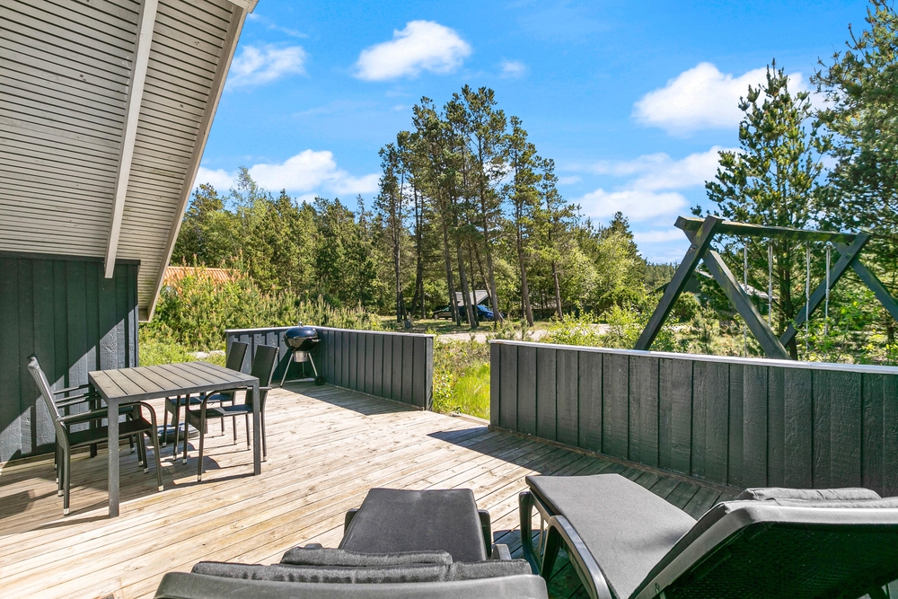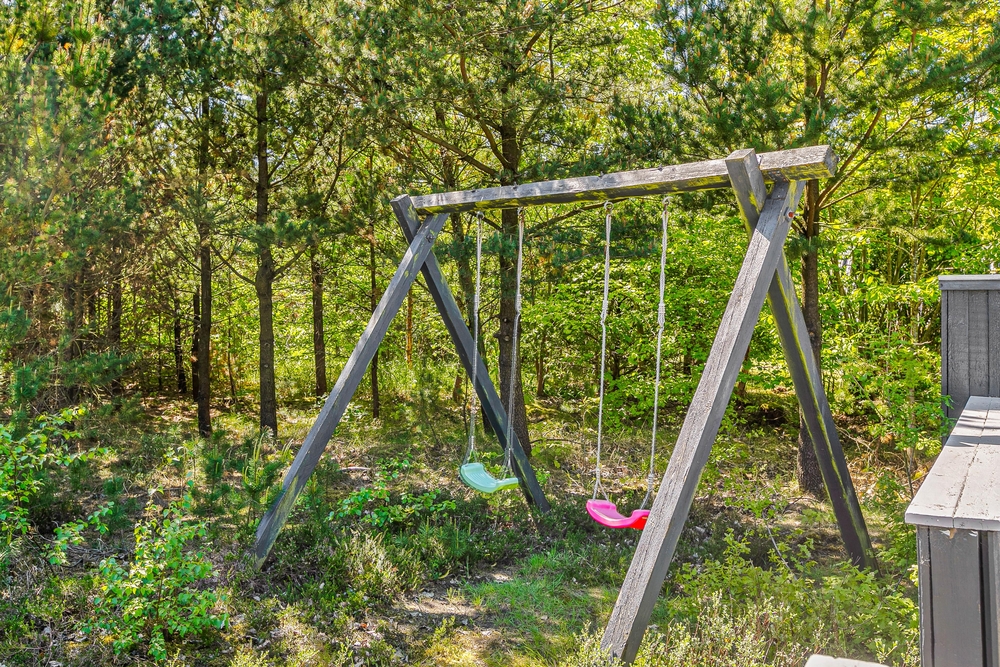 Außerhalb des Ferienhauses gibt es auch einiges zu entdecken. So findet ihr hier Gartenliegen und einen Grill um den selbstgeangelten Fisch braten zu können. Die Schaukel und der Sandkasten bieten reichlich Spielmöglichkeiten für die kleinen Gäste des Ferienhauses.