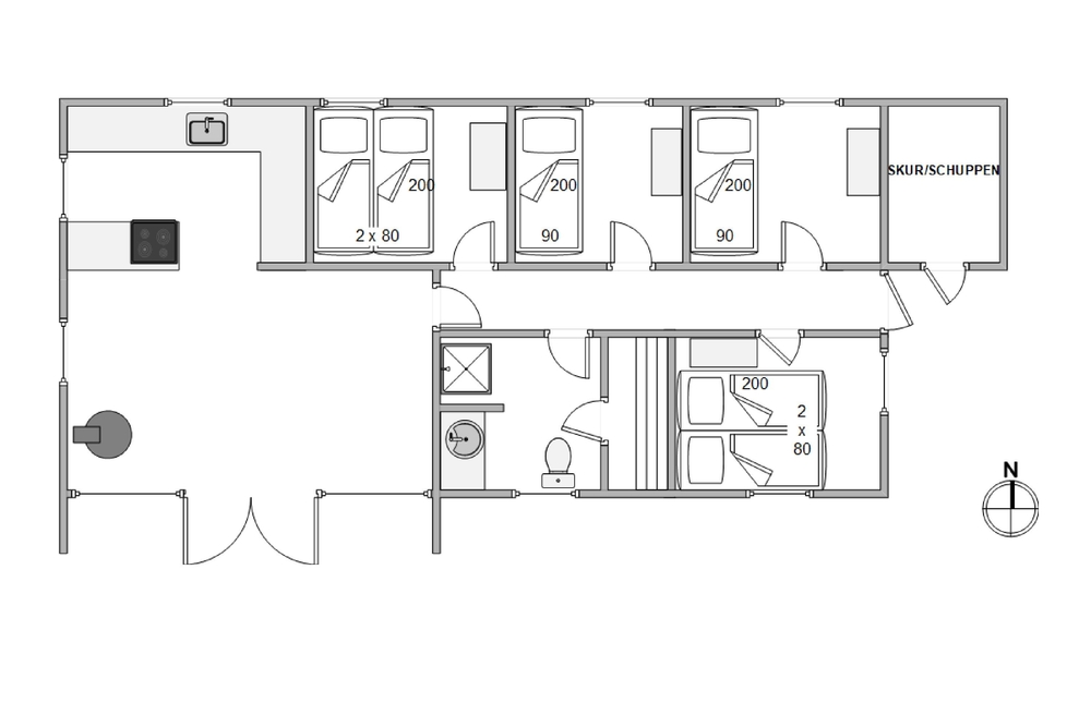 Im Skovvang 96 findet ihr dieses schöne und urige Holzferienhaus. Insgesamt gibt es hier 4 Schlafzimmer, 2 Doppelbettzimmer und 2 Einzelbettzimmer. Alles in allem hat das Ferienhaus Platz für 6 Personen und 2 Hunde. Durch die Zimmeraufteilung ist dieses Ferienhaus perfekt geeignet für Familien, Bekannte aber auch für Paare die einfach ein paar Tage ungestörte Zweisamkeit suchen. Jetzt müsst ihr euch nur noch entscheiden, ob ihr die große Terrasse oder den offenen Wohnbereich als neuen Lieblingsort wählt.