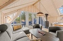 Generell ist das Ferienhaus sehr hell und freundlich, und das liegt nicht nur an der Einrichtung, sondern auch an der großen Fensterfront im Wohnbereich. Diese sorgt dafür, das sowohl das Wohnzimmer, als auch die angrenzende Küche ausreichend mit Tageslicht versorgt werden.